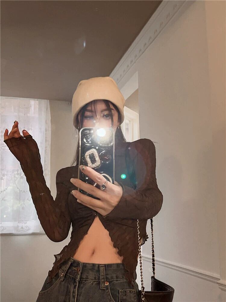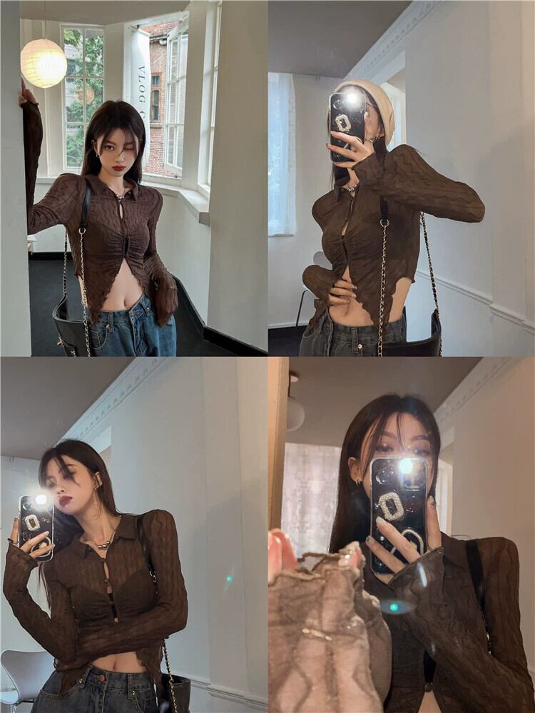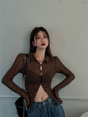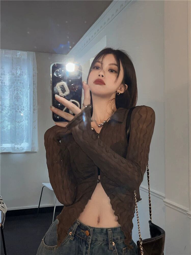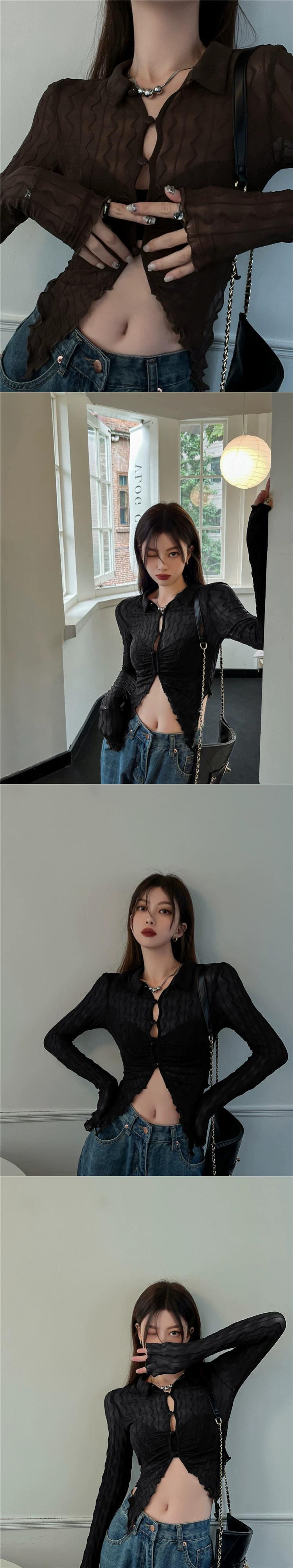 フレンチレトロセクシーなスリム長袖シャツ女性の夏の2023新しいニッチ不規則なショートアゲハトップ ロング サマー 夏物 0921978362299784