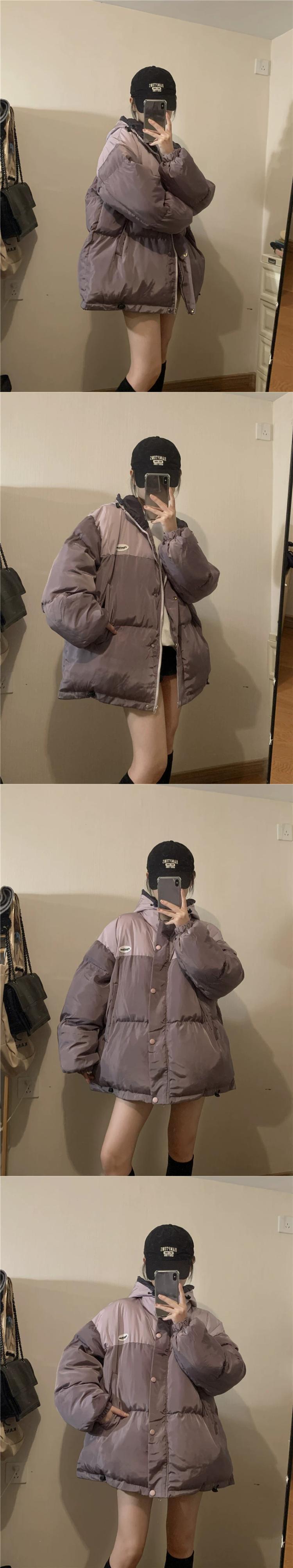 ese スプライシング肥厚フード付きコットンコート女性の冬 2023 新しいオールマッチルーズスリム綿パッド入りジャケット綿パッド入りの服潮 ウィンター 冬物 0921935487652555