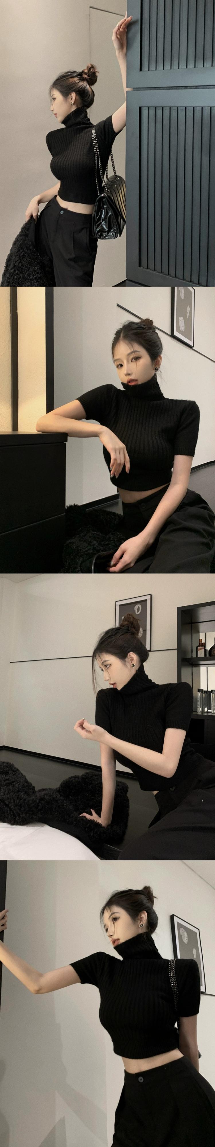 -エンドショートハイネック半袖セーターレディース2023年春新作オールマッチ自己修養と薄底シャツトレンディ スプリング 春物 0921916238840027