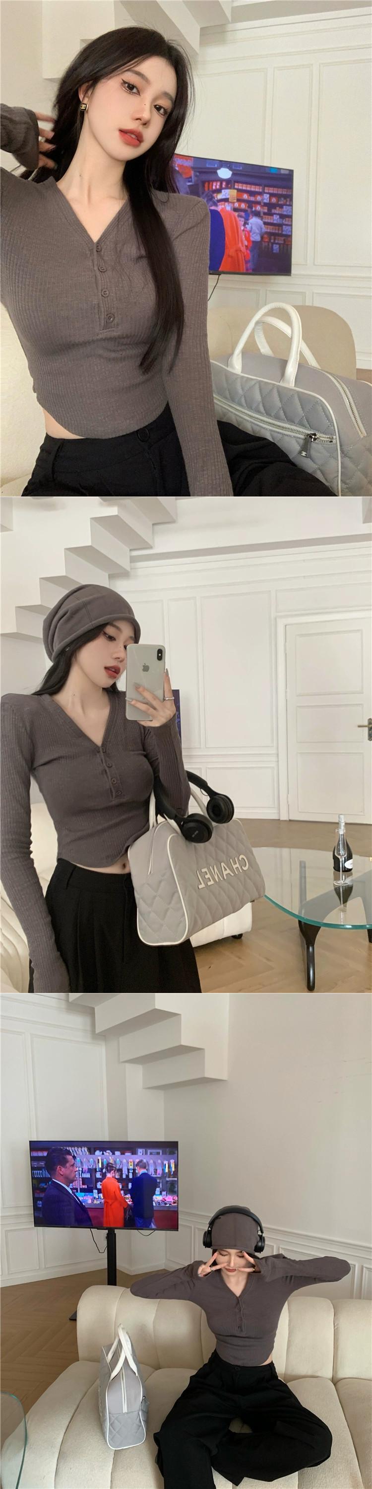センスニッチ気質 V ネック長袖 Tシャツレディース 2023 春の新作オールマッチスリムショートボトムシャツトップ ロング スプリング 春物 Vネック 0921919363369227