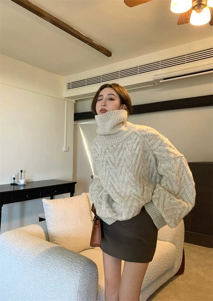 レトロ怠惰な風ツイストルーズプルオーバーセーター女性の春と秋 2023 新しいオールマッチスリム長袖ニットトップ ロング スプリング 春物 オータム 秋物 0921971488082067