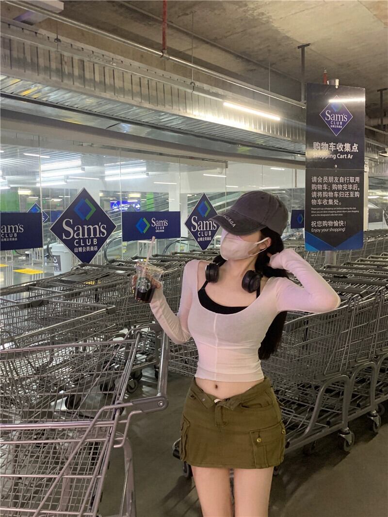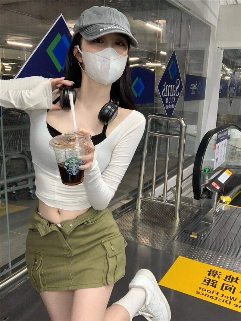 Sweet Spice Girl Low ラウンドネック セクシー Tシャツ レディース 春 ストラップレス 長袖 スリムフィット ショートトップ 2点セット ロング 大人ガーリー スウィート キュート カジュアル スプリング 春物 Oネック 0921932962165082