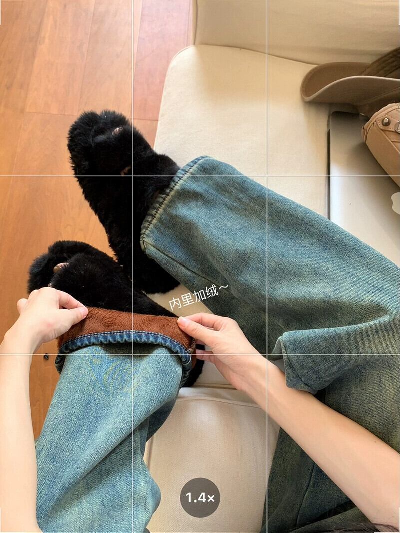 レトロなローエッジジーンズの女性の春と秋の新しいスタイルプラスベルベット肥厚ルーズバージョンワイドレッグストレートデニムモップパンツ スプリング 春物 オータム 秋物 0921974186890518
