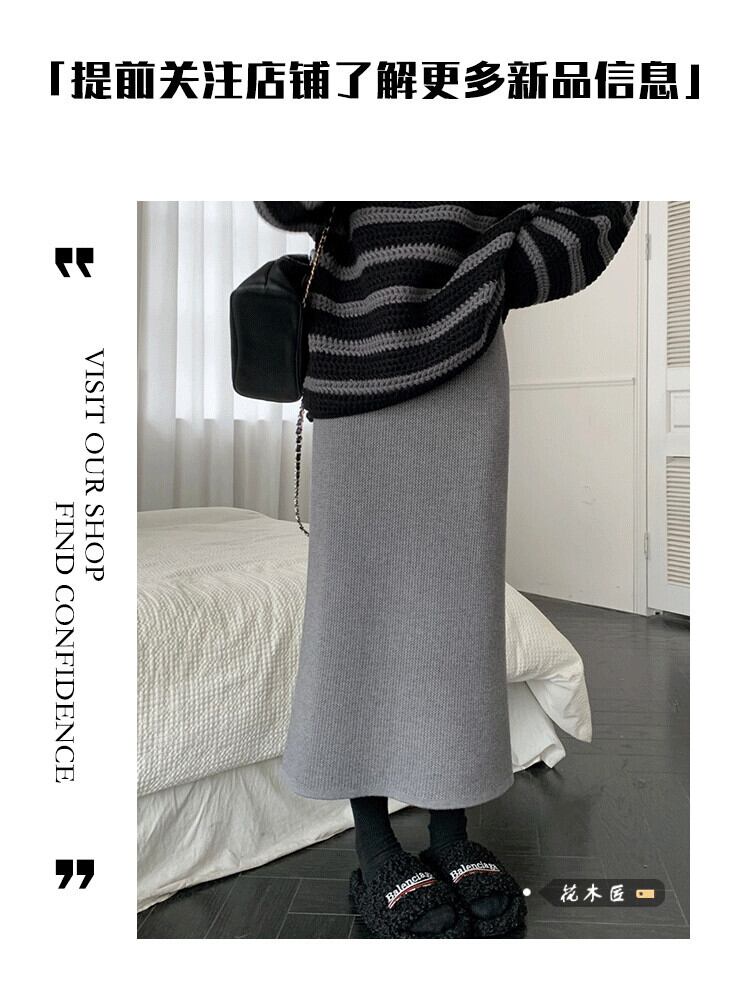 バージョンのソリッドカラープラスベルベット厚手のニットスカートの女性の冬の2023新しいミッドレングスハイウエストオールマッチAラインスカート ハイウェスト ウィンター 冬物 092193645024445