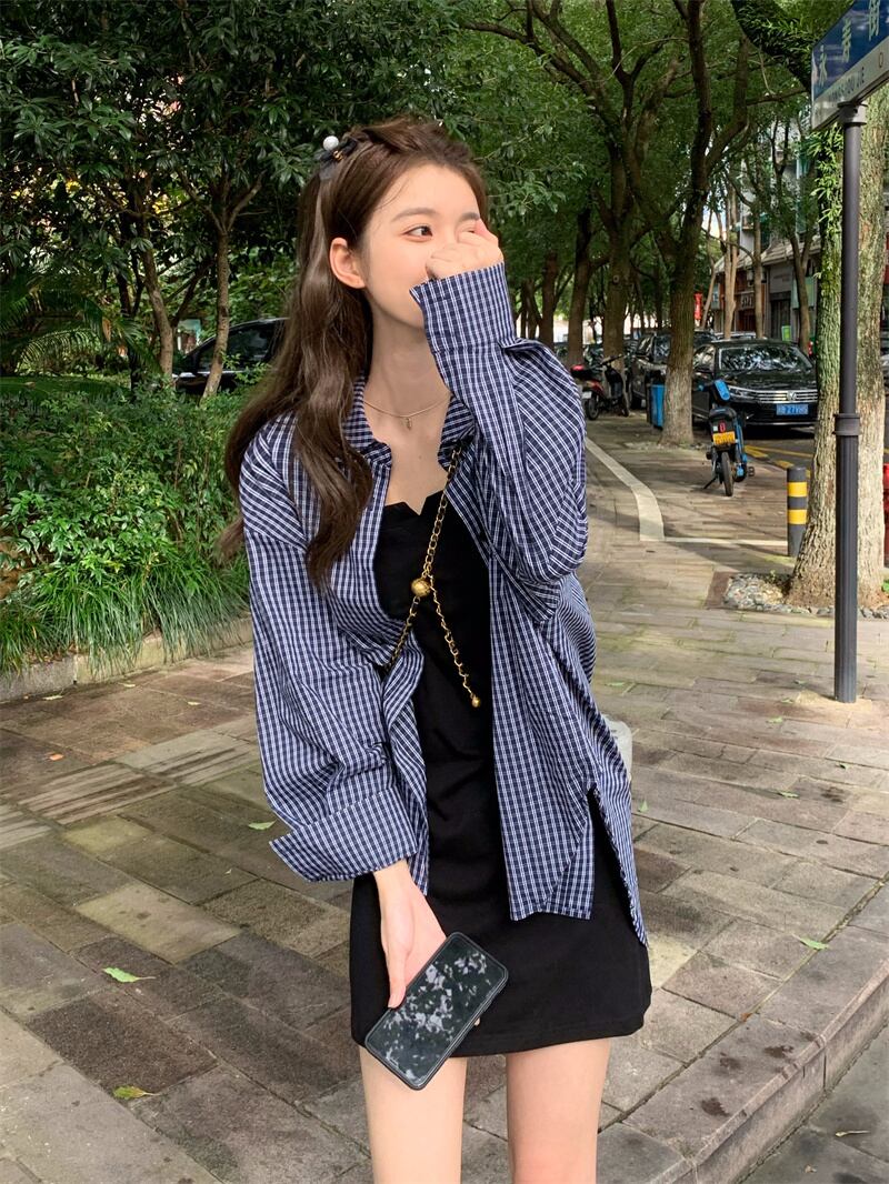 多彩なデザインのレトロな格子縞のシャツジャケットの女性の夏の 2023 新しいミッドレングスルーズ長袖シャツ ロング サマー 夏物 0921990585231276