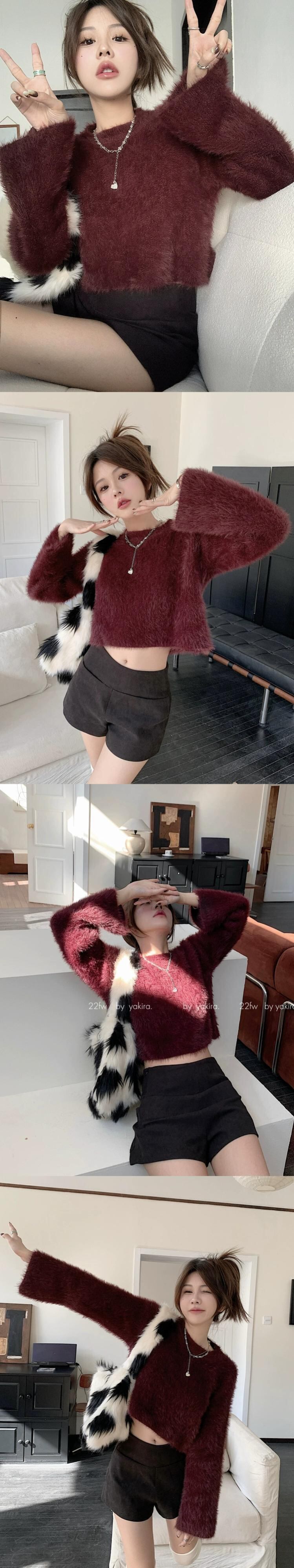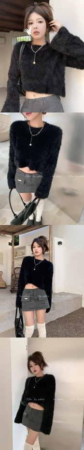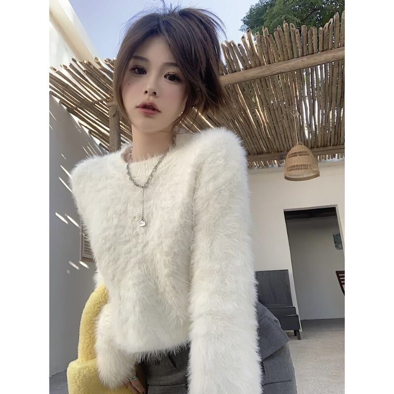 柔らかいもちミルクfufu模造ミンクベルベットセーター女性の2023春と秋の新しいスタイルの優しく怠惰なショートニットトップ スプリング 春物 オータム 秋物 0921938179744433