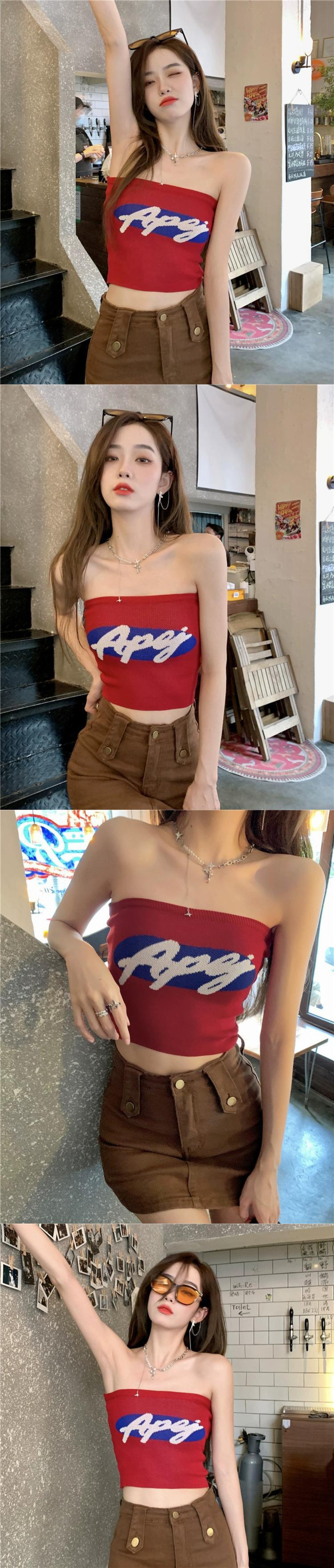 アメリカのヒットカラーレターチューブトップベスト女性の夏の2023新しいスタイルの内側と外側がセクシーなノースリーブトップ潮を着ています サマー 夏物 0921936531746235