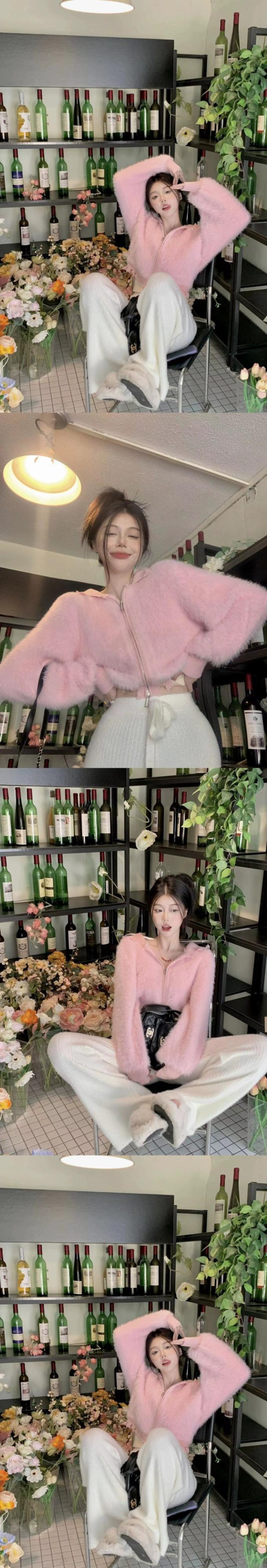 ピンク模造ミンクフリースセータージャケット女性の春 2023 新しいソフトワックスのような優しい風ショートカーディガントップ スプリング 春物 0921978891168565