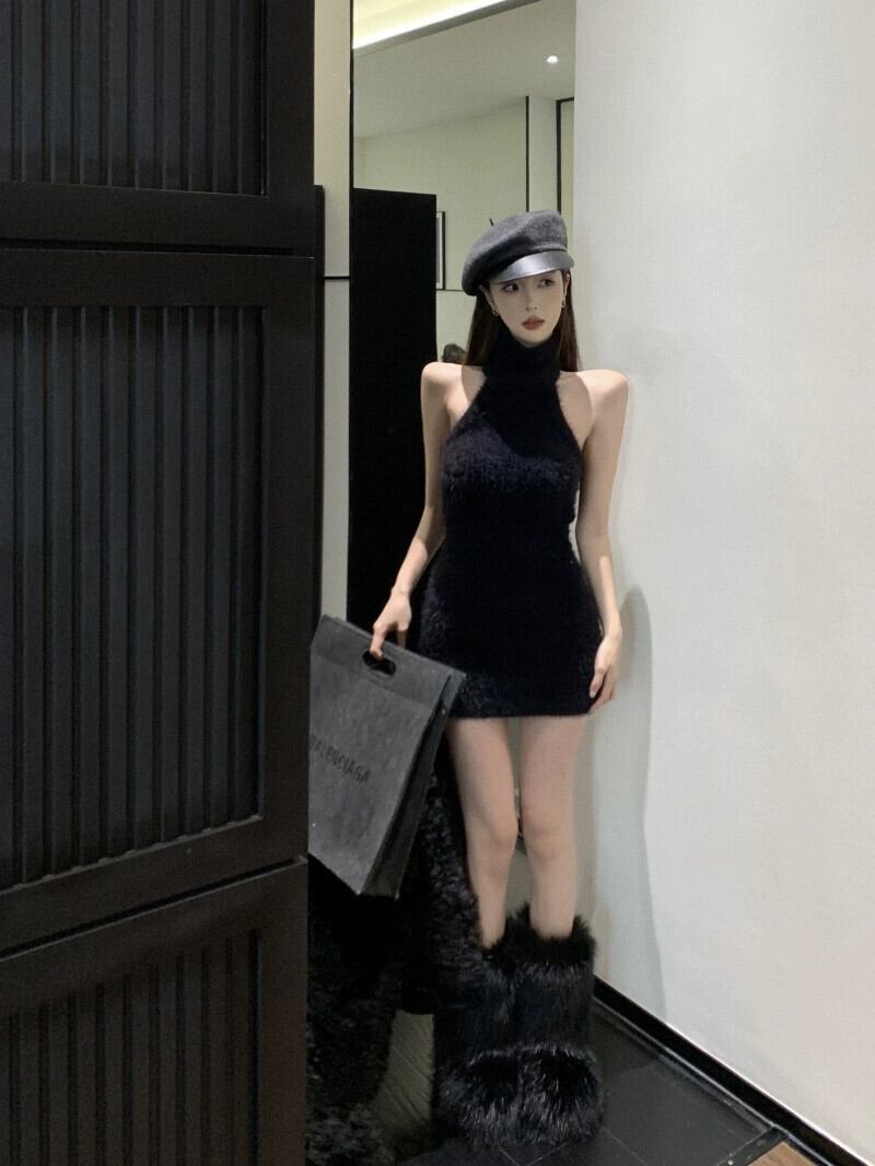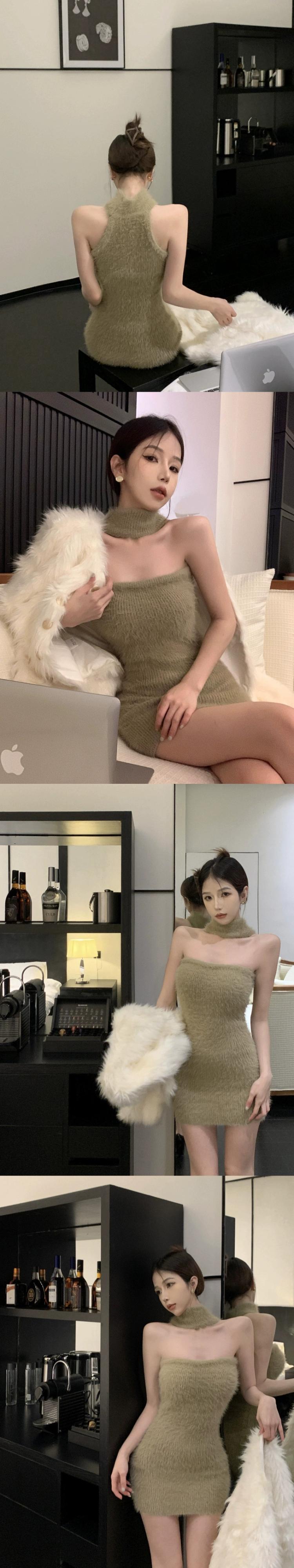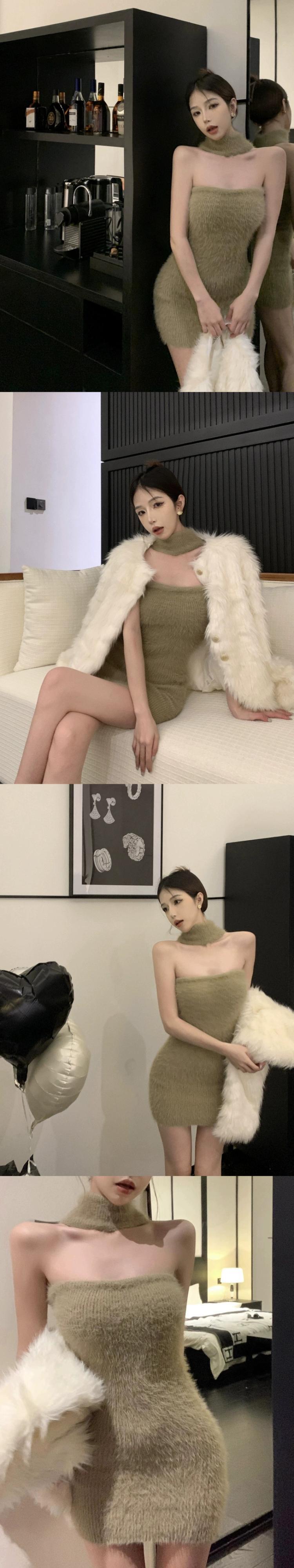 純粋な欲望ぶら下げネックワンショルダードレス女性の冬 2023 新しいタイトフィット底バッグヒップスカート ウィンター 冬物 0921973276372097