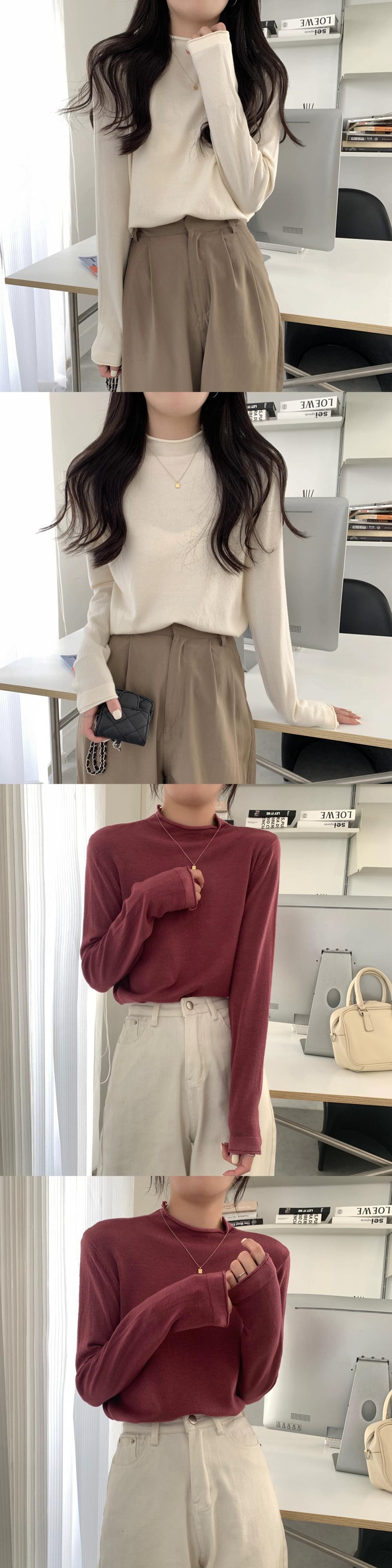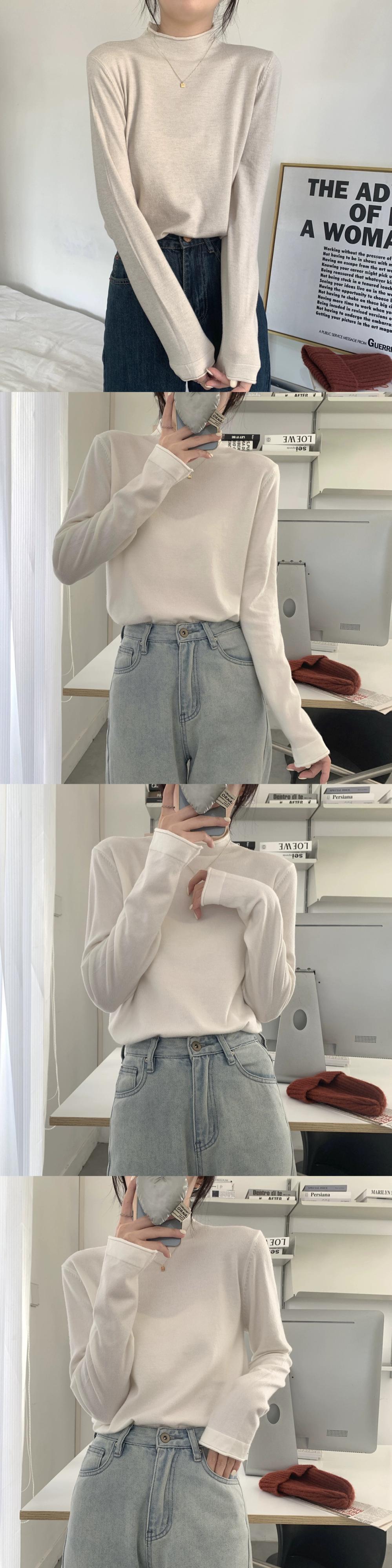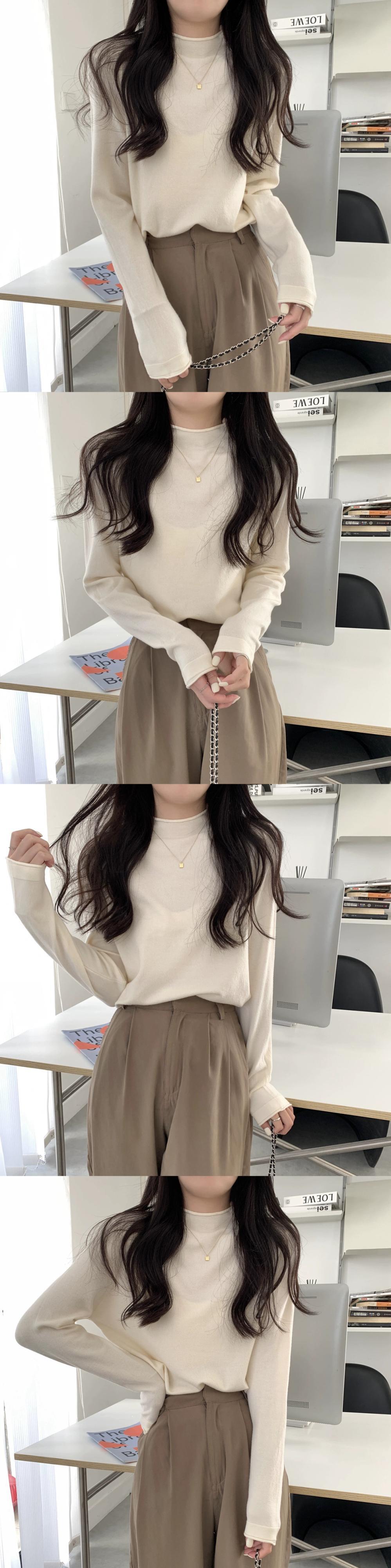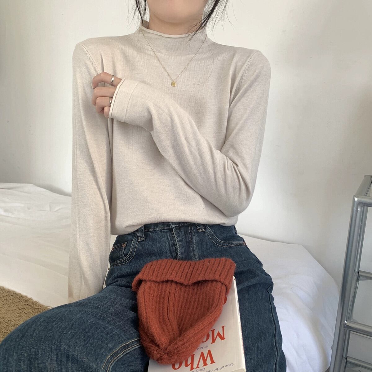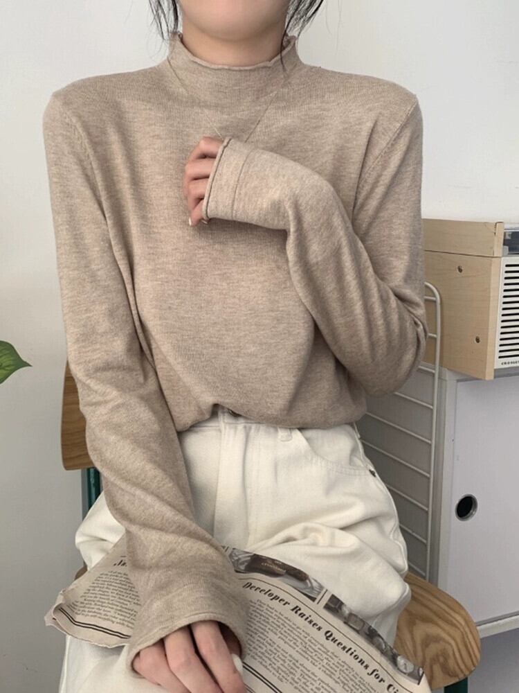 ハーフハイカラー長袖スリムフィットセーターレディース2023年春新作オールマッチボトリングシャツインナートップのバージョン ロング スプリング 春物 0921971616868169