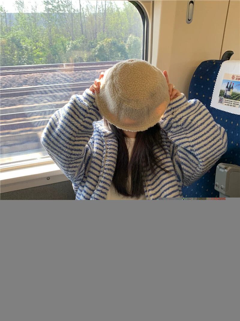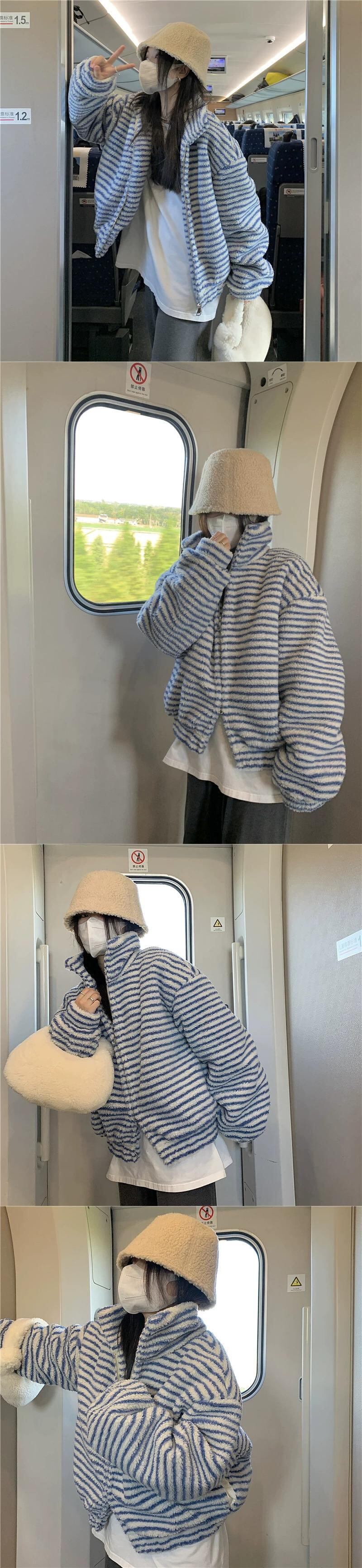 ブルー波形プラスベルベット厚手コート女性の2023年春と秋の新しいデザインセンス模造ラムウールルーズトップのバージョン スプリング 春物 オータム 秋物 0921945520262755
