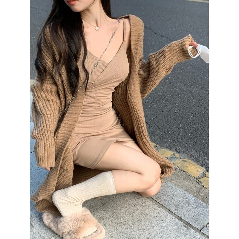 デザインセンスルーズセータージャケットレディース2023春新作ミッドレングススリムニットカーディガントップ潮 スプリング 春物 0921969104020264