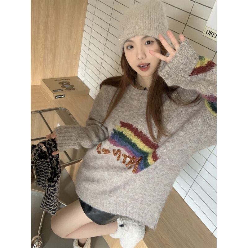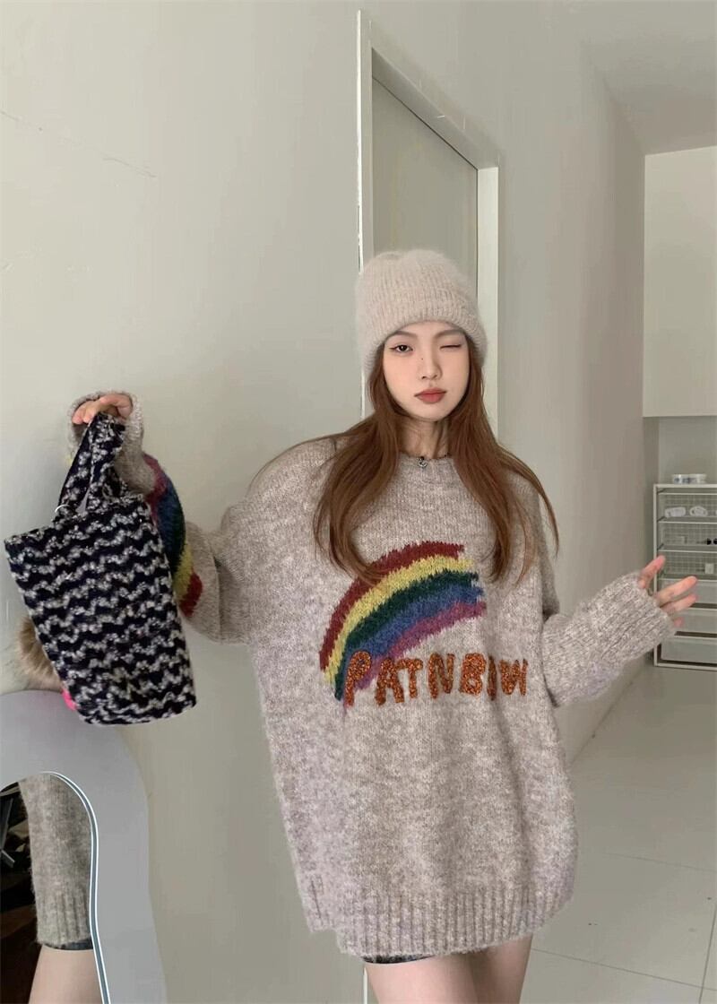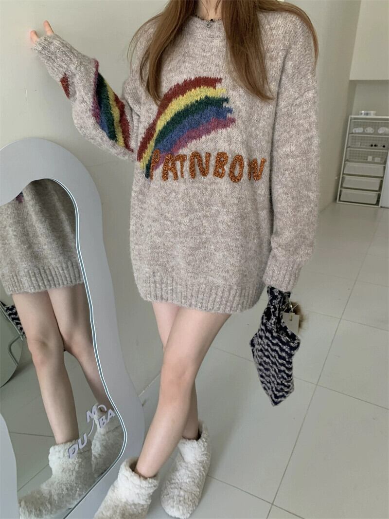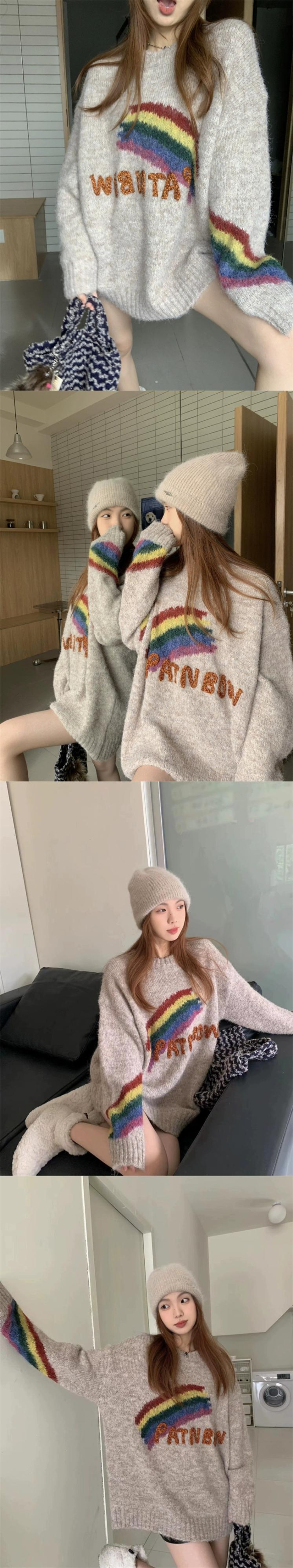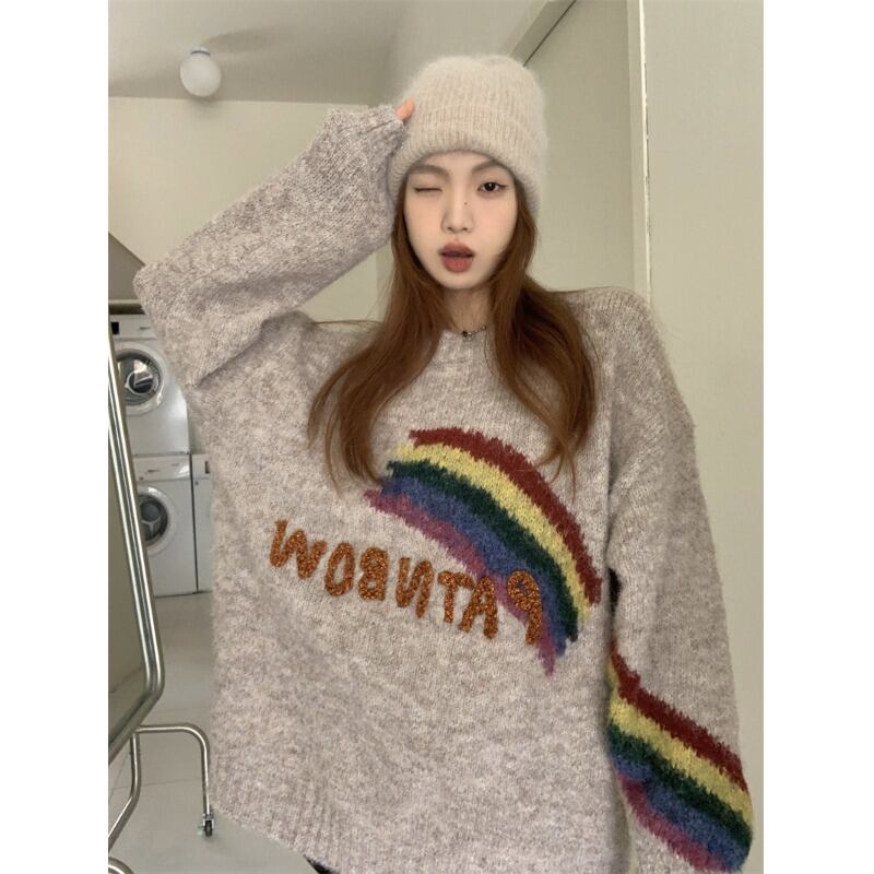 立体虹文字ルースソフトワックスセーター女性の春と秋の 2023 新しいオールマッチスリム長袖セータートップス ロング スプリング 春物 オータム 秋物 0921920494503897