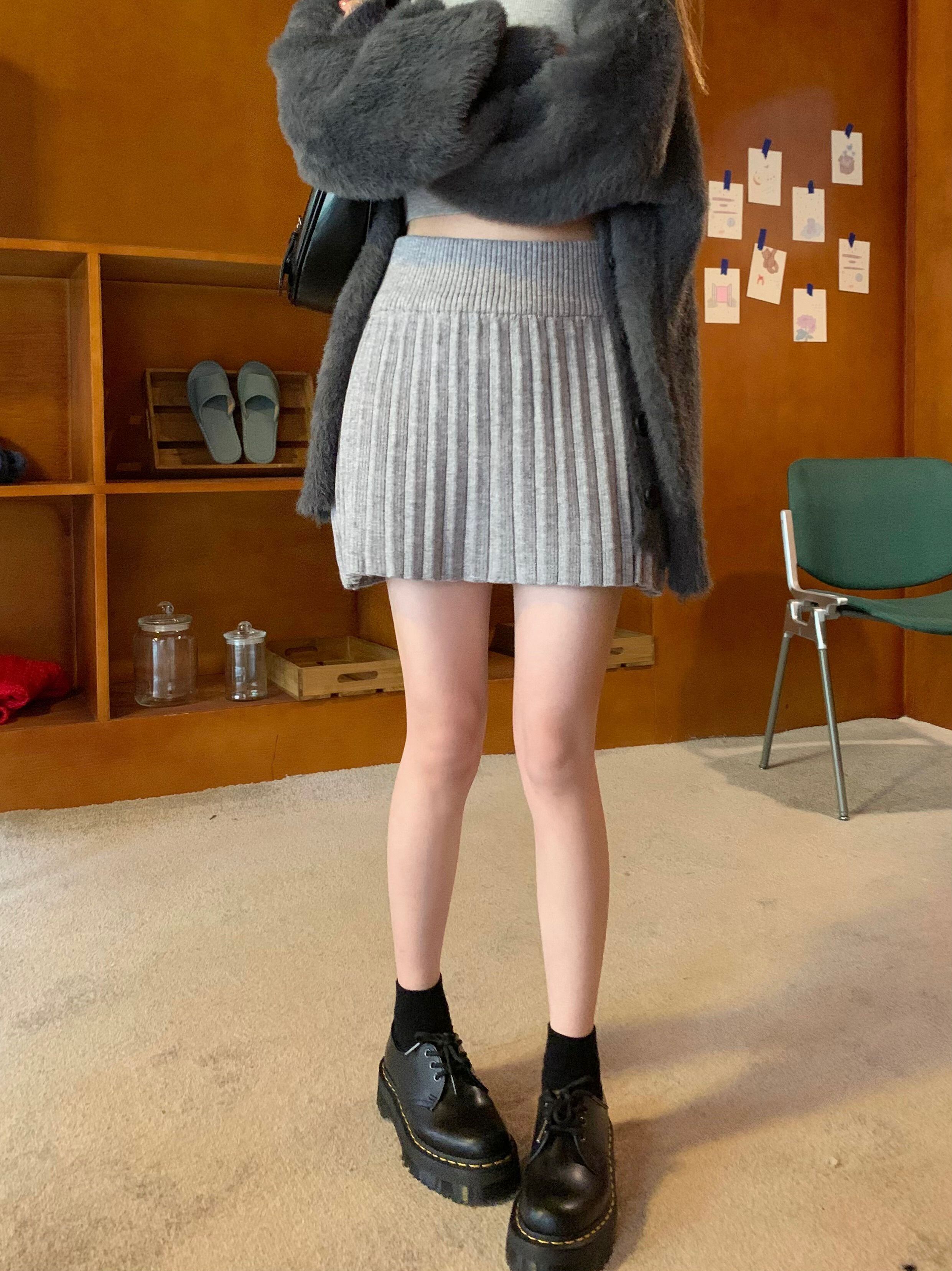 レトロハイウエストスリムニットスカートレディース2023春新作オールマッチデザイン感プリーツAラインショートスカート潮流 ハイウェスト スプリング 春物 0921979575397494