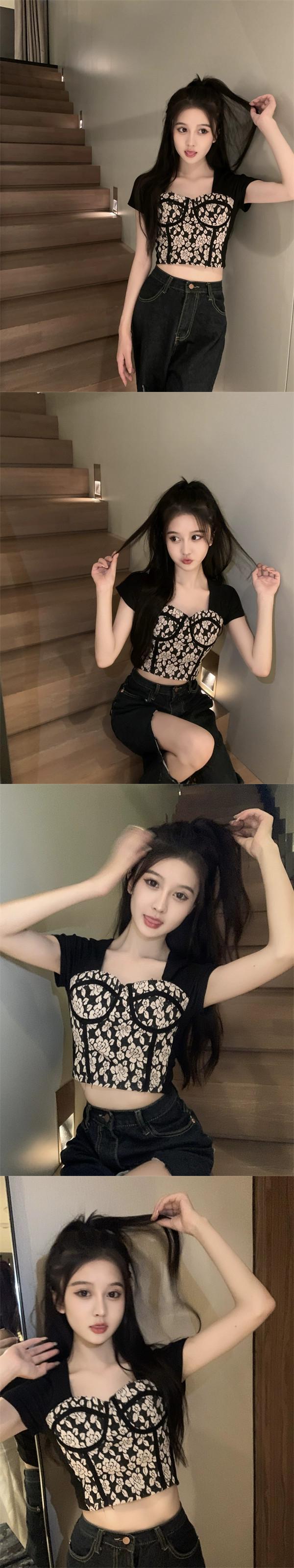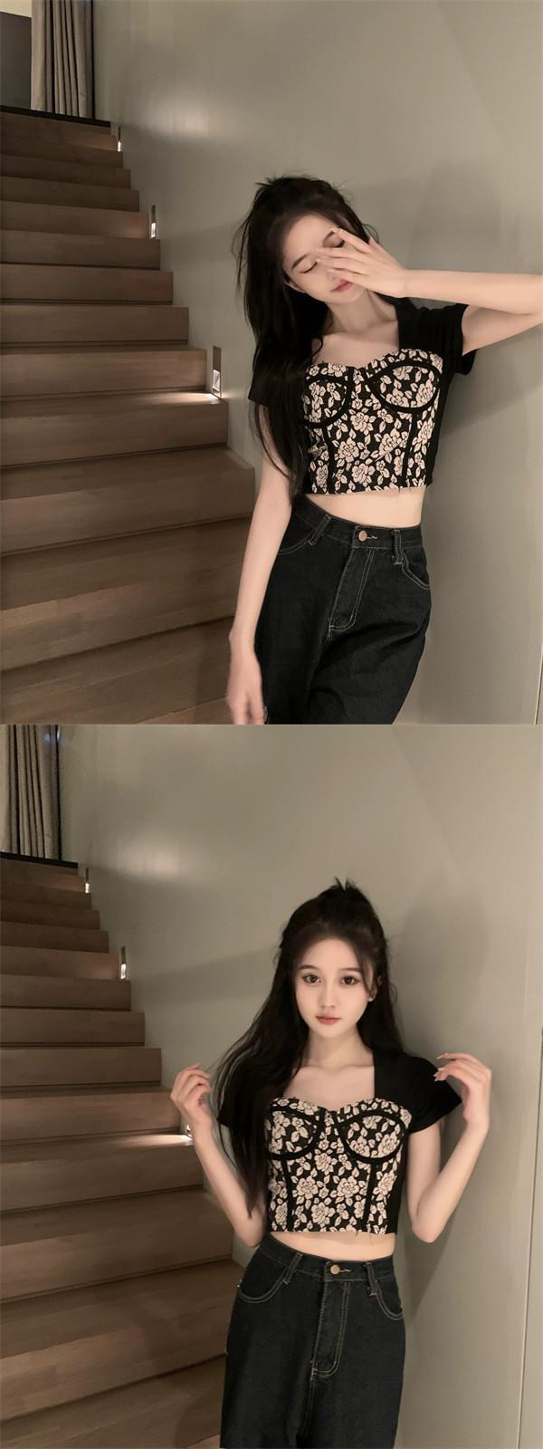 香港風の気質カラープリント半袖 Tシャツ婦人服 2023 夏の新スリムスリムファッションオールマッチトップス サマー 夏物 0921956912518692