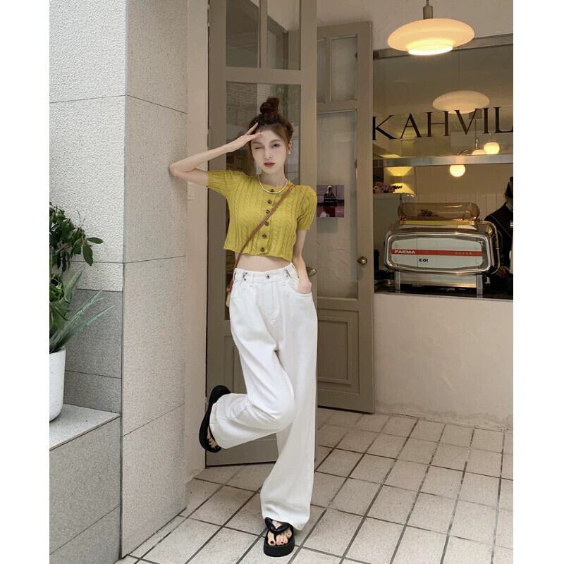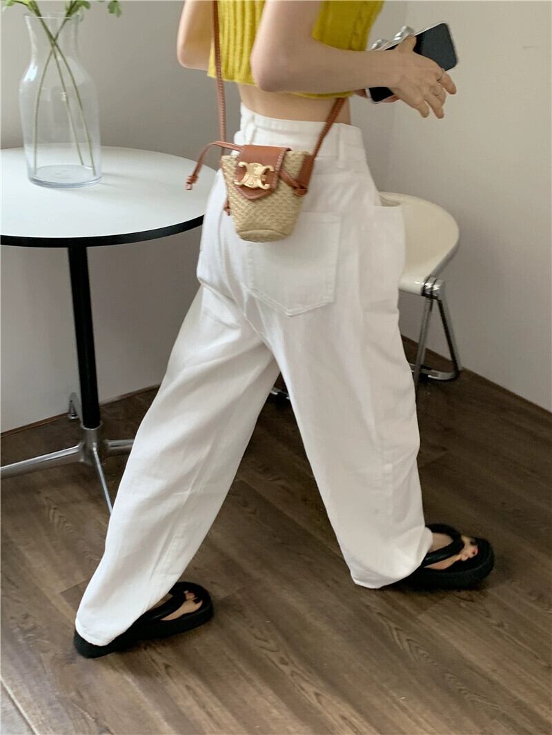 甘くてクールなホワイトジーンズレディース2023年夏新作オールマッチカジュアルハイウエストスリムワイドレッグモップパンツ ハイウェスト 大人ガーリー スウィート キュート サマー 夏物 0921950686441891