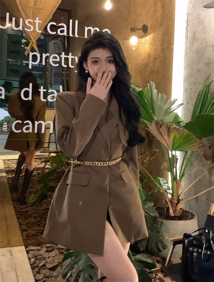 スタイル デザイン センス ニッチ ハイエンド ベルト スーツ ジャケット レディース 2023 春の新作 ルーズ ミドル丈 スーツ トレンド スプリング 春物 ハーネス 0921985900015585