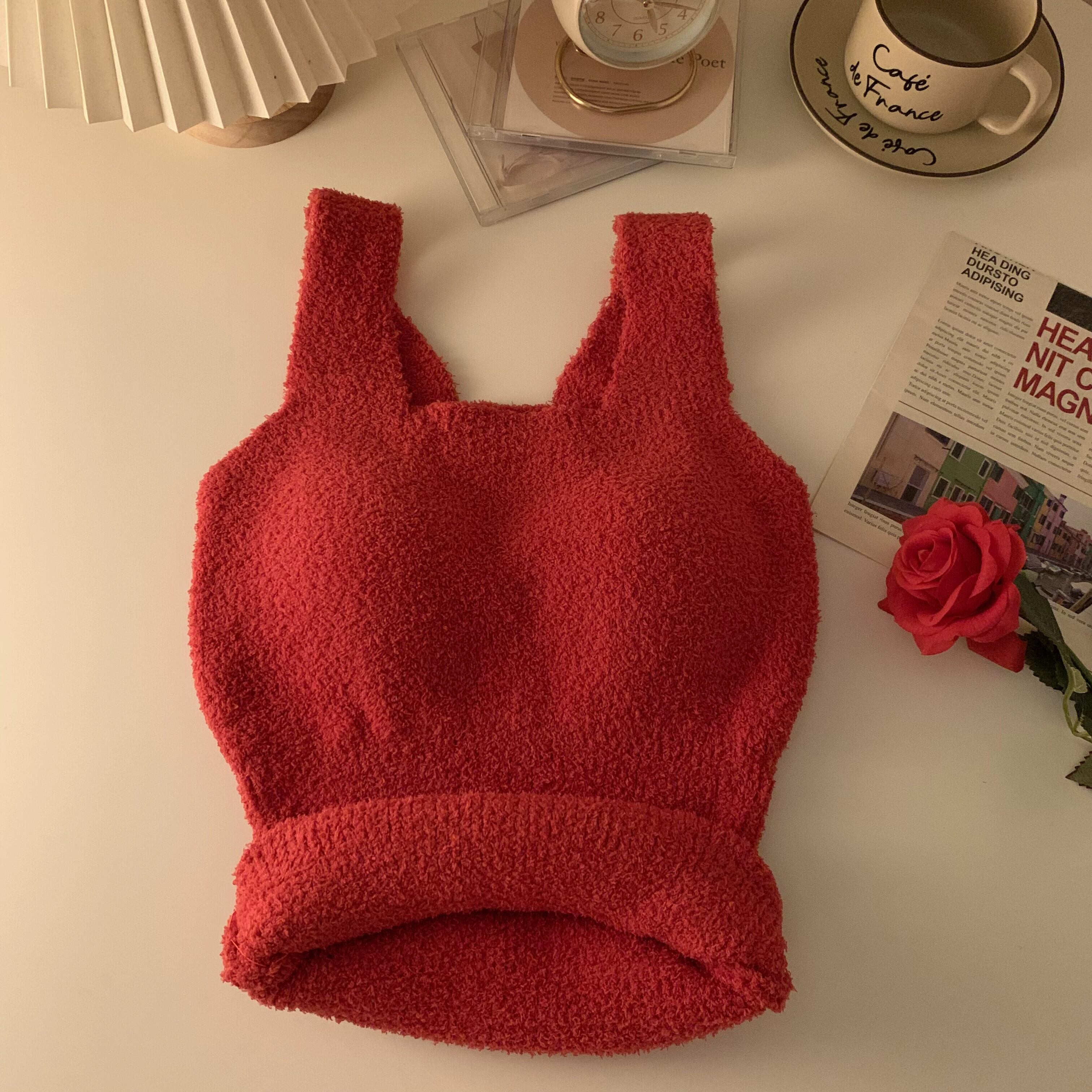 模造羊と模造子羊ベルベット胸パッド付きベルベット厚いベスト女性の 2023 春と秋の新しいショートスタイルスリムで薄いサスペンダー スプリング 春物 オータム 秋物 0921994963103247