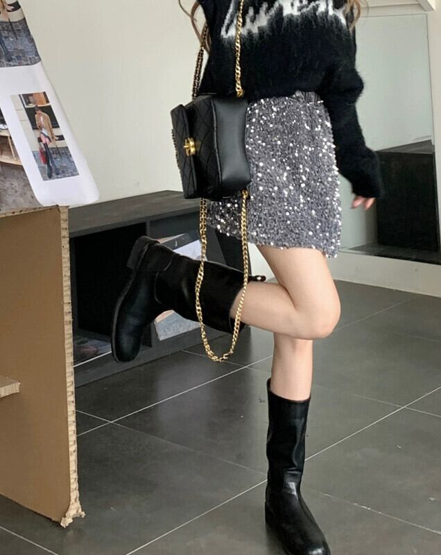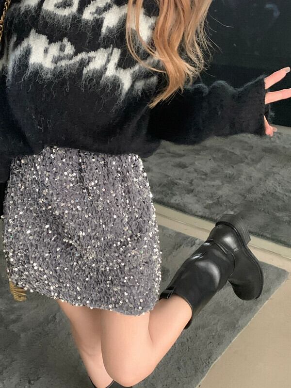 センスオールマッチ弾性ハイウエストスリムスパンコールスカート女性春と秋 2023 新しい抗光 A ラインスカート ハイウェスト エラスティック 伸縮 スプリング 春物 オータム 秋物 Aライン 0921919528037470