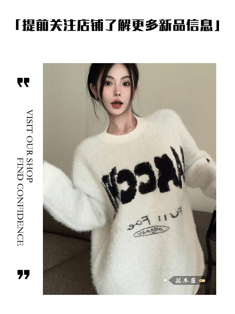 黒怠惰な風豪華なセーターの女性の春と秋 2023 新しいルーズプルオーバーミッドレングスニットセータートップ ブラック スプリング 春物 オータム 秋物 0921924830805987