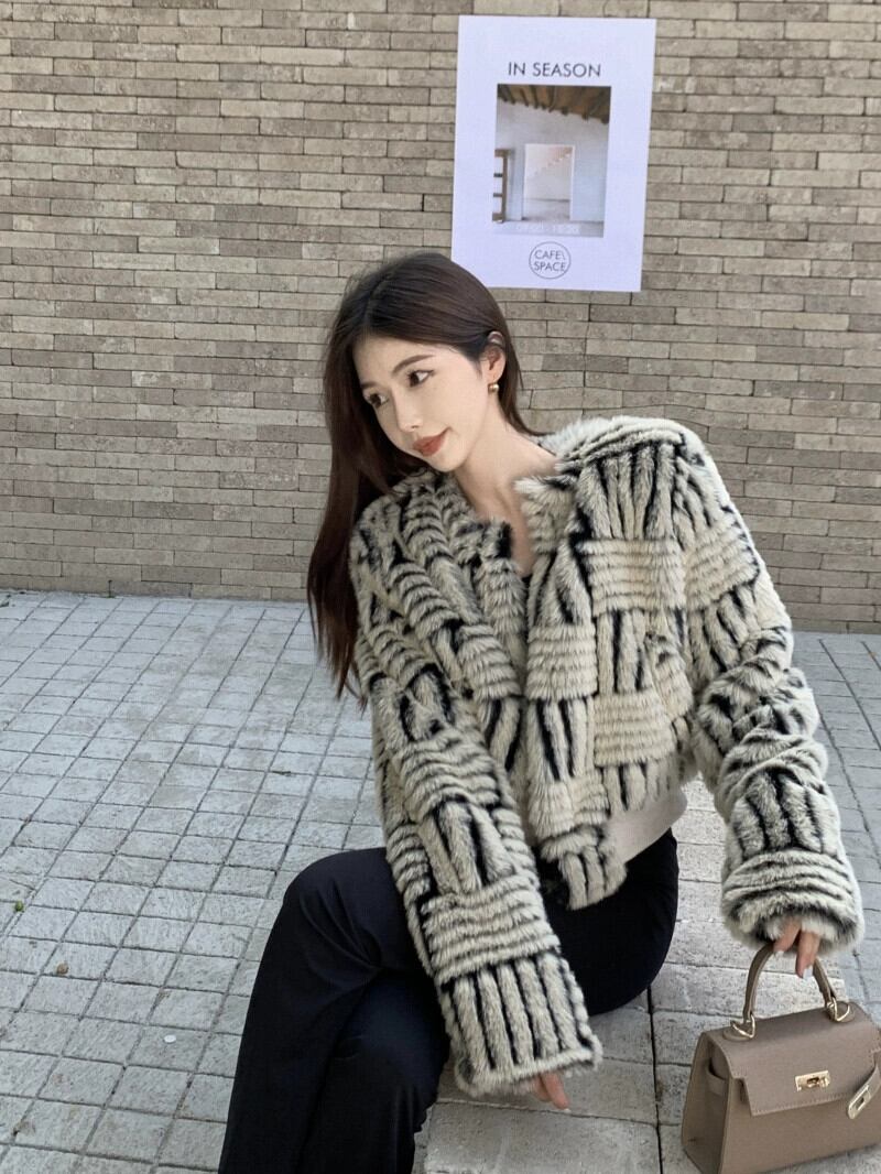 -終わり小さな香りのよい風肥厚毛皮コート女性の春と秋の 2023 新作模造ラムウールショートカーディガントップ潮 スプリング 春物 オータム 秋物 0921933205544505
