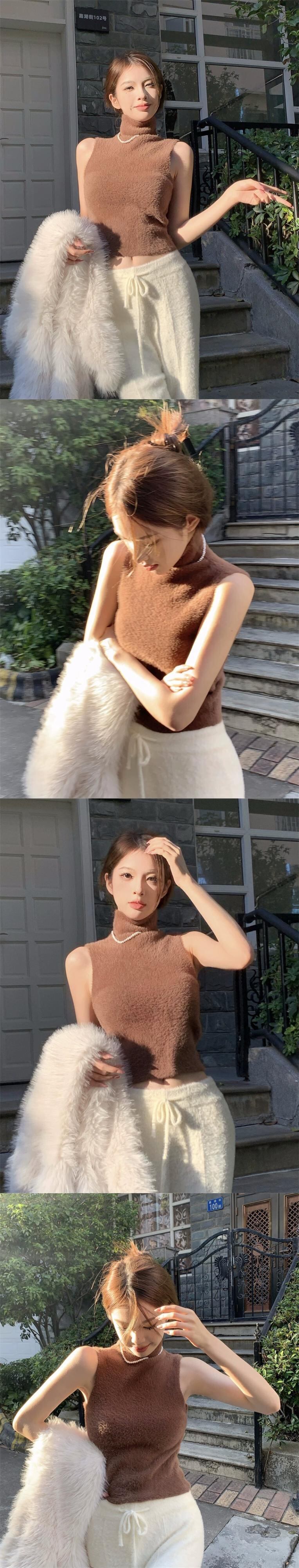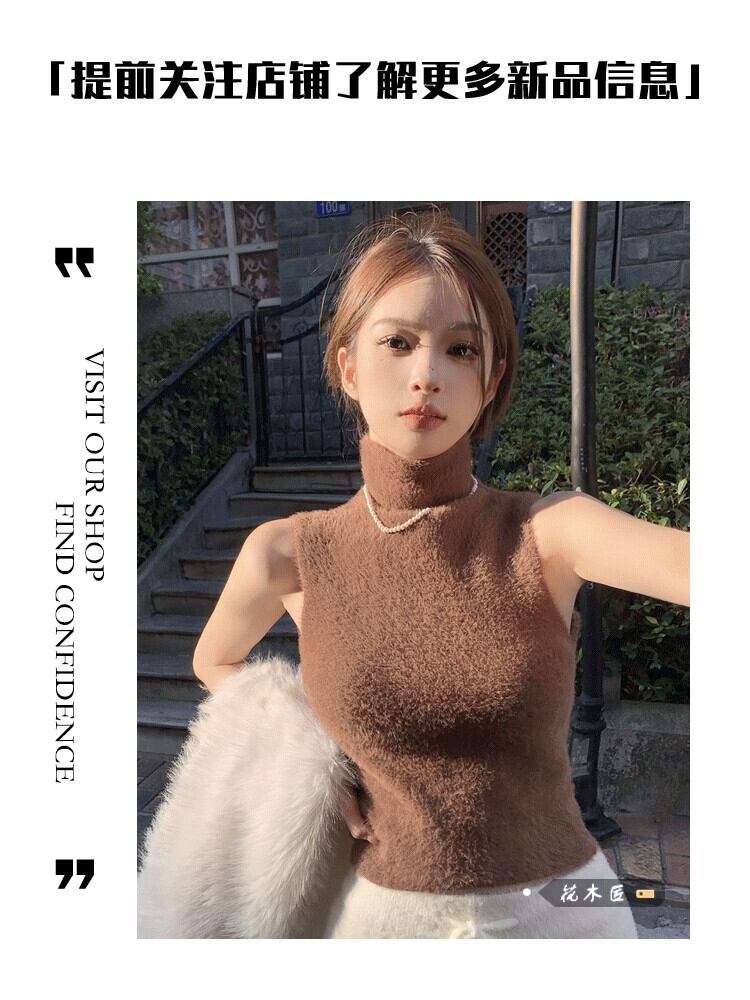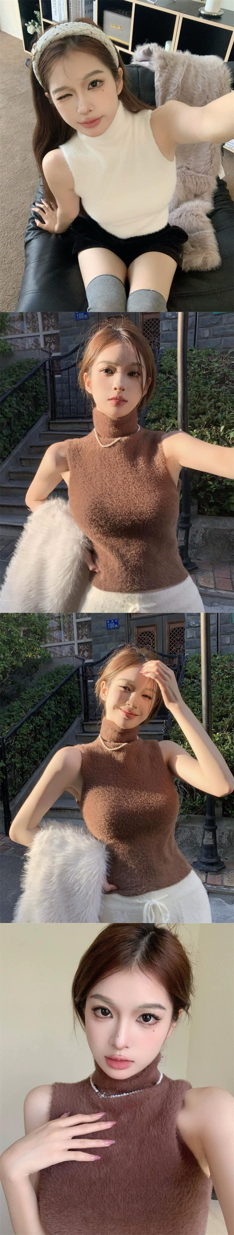 気質スリムハイカラーノースリーブベスト女性の春と秋の2023新しい痩身オールマッチ模造ミンクベルベットインナーボトミングトップ スプリング 春物 オータム 秋物 092193595781302