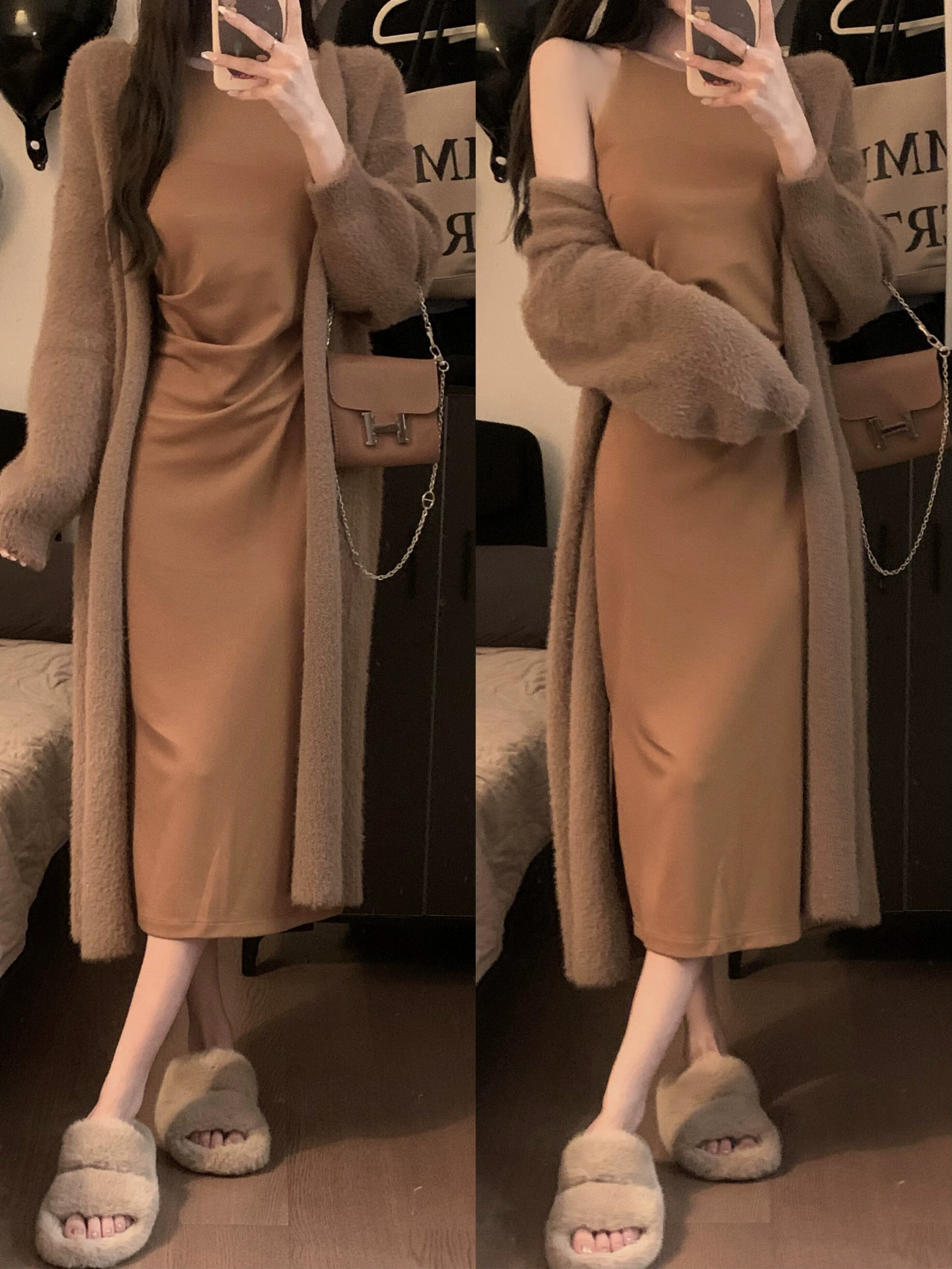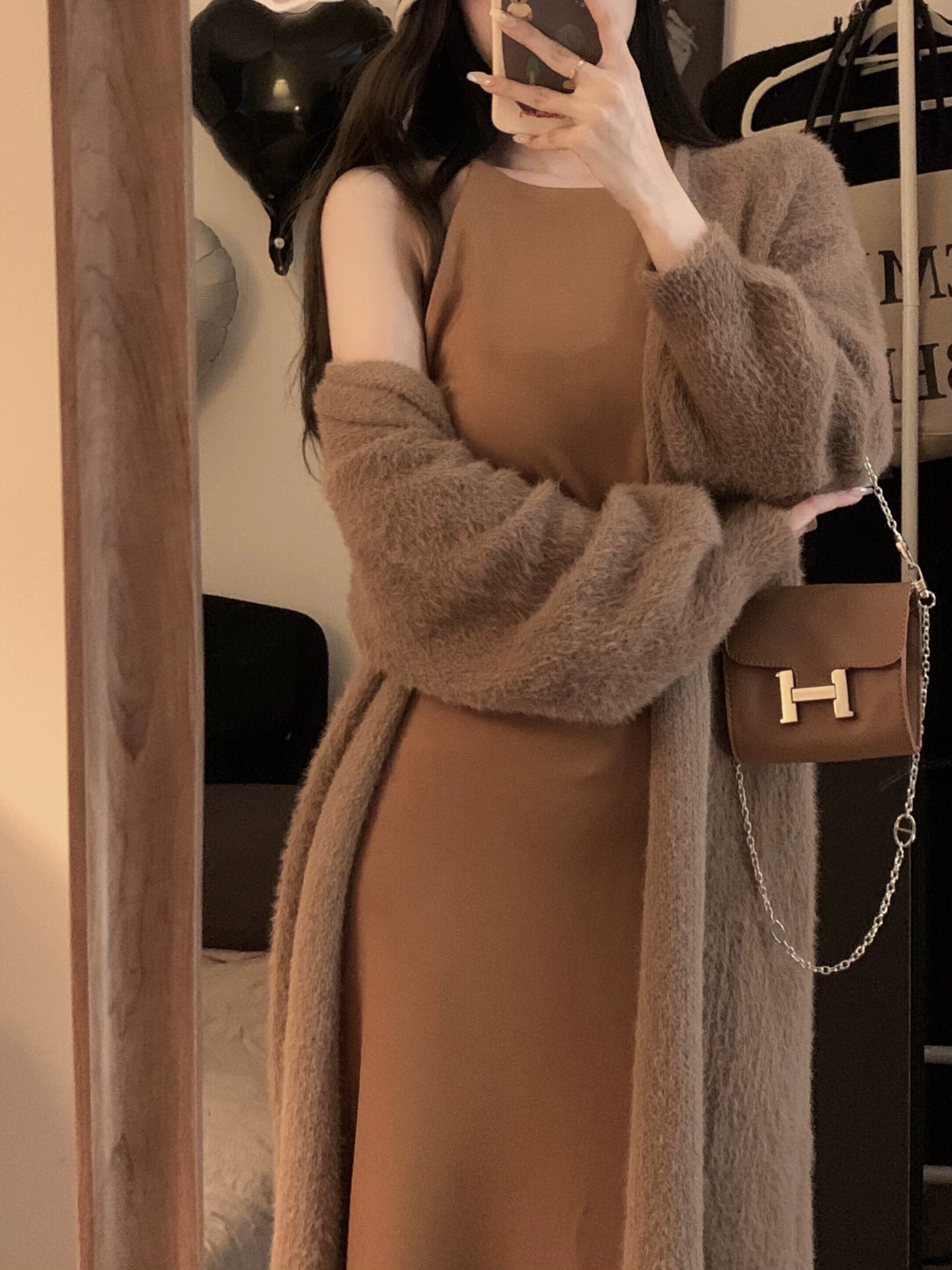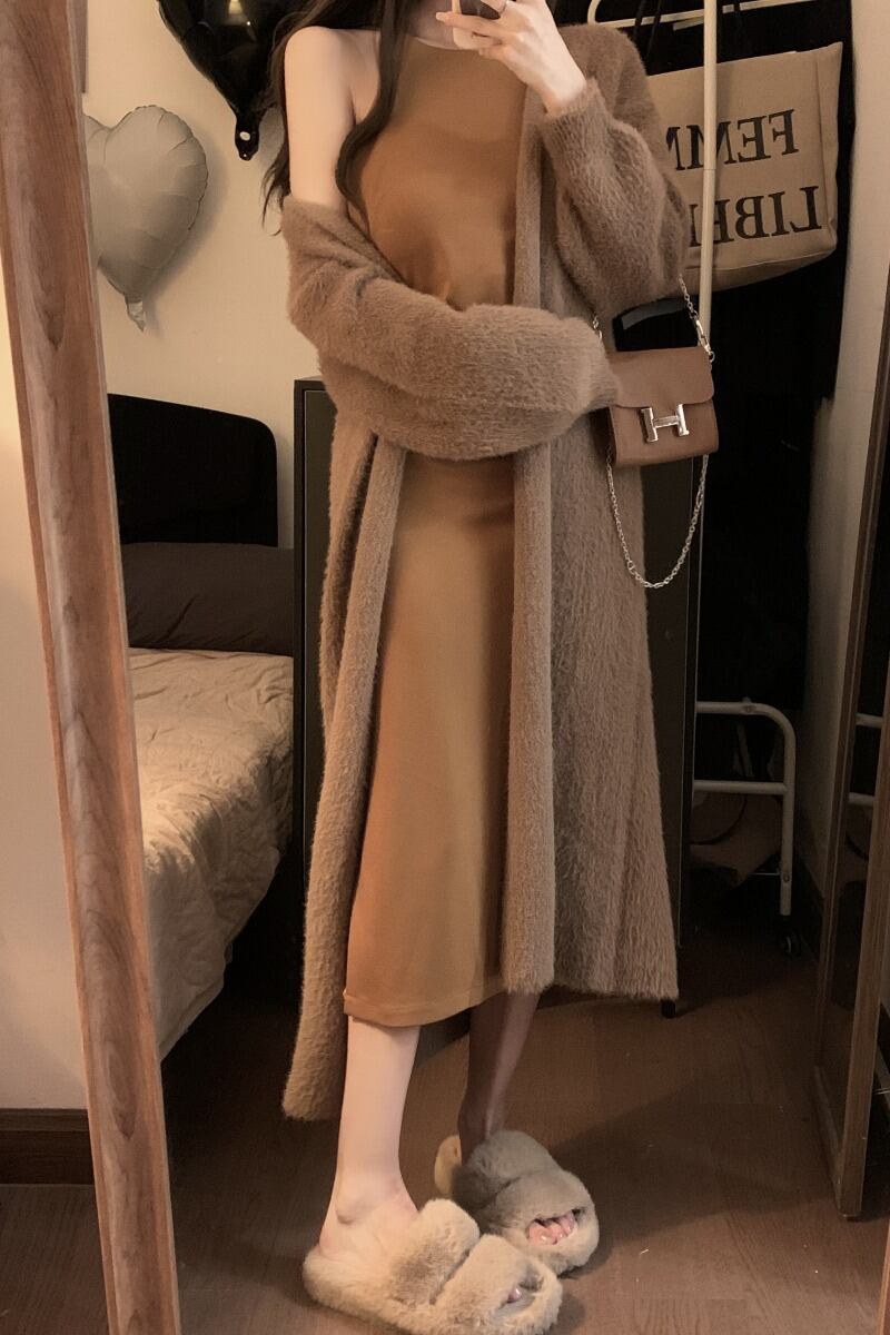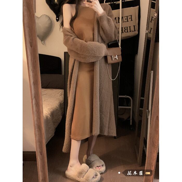 怠惰なスタイルファッショナブルなルーズ長袖セータージャケット女性の 2023 年春の新しいオールマッチミッドレングスニットトップ潮 ロング スプリング 春物 092197685463743