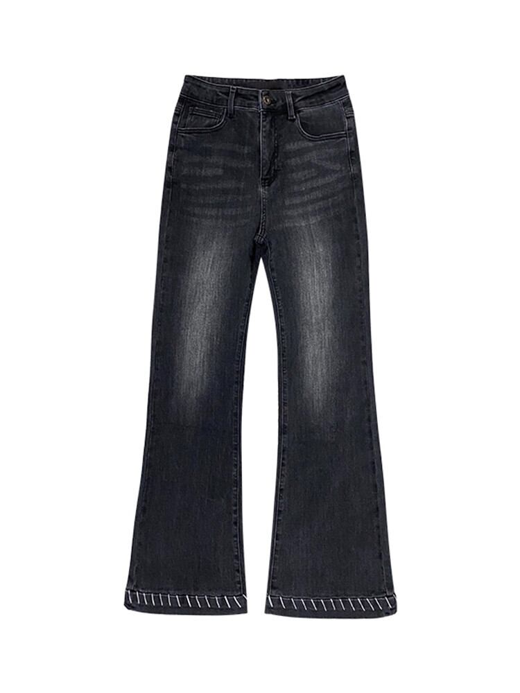 レトロハイウエスト薄型ジーンズ女性の 2023 春と秋の新しいオールマッチカジュアルワイドレッグマイクロフレアパンツ レッド スプリング 春物 オータム 秋物 0921942609416529