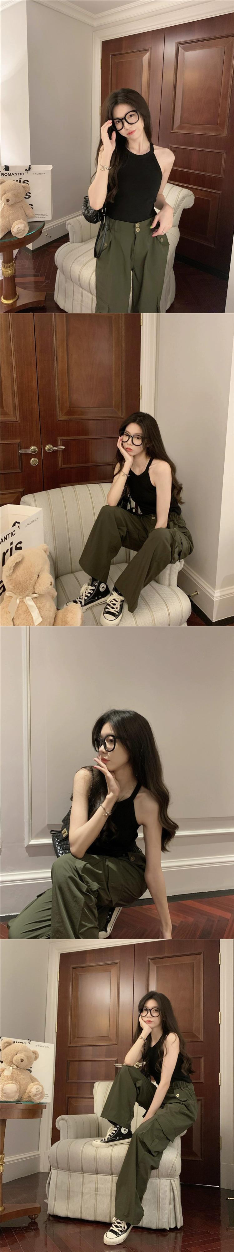 色:ダークグレーのスリング,アプリコットスリング,黒のホルターベスト,アプリコットパンツ,ピンクのパンツ,アーミーグリーンパンツ