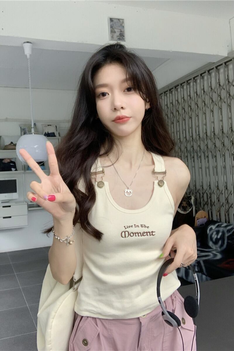 アメ文字刺繍キャミソールレディース2023夏新デザインセンス着痩せオールマッチショートトップ レッド サマー 夏物 0921966040117238