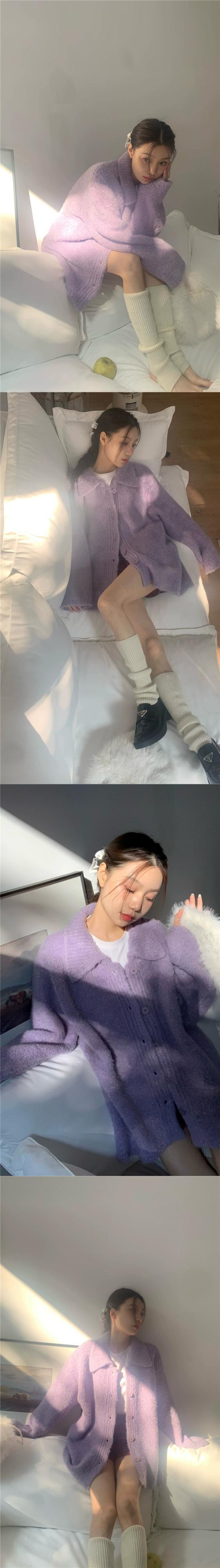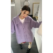 レトロ怠惰な風ラペルセータージャケット女性の春 2023 新しいデザインセンスニッチパープルニットカーディガン スプリング 春物 0921975182436648