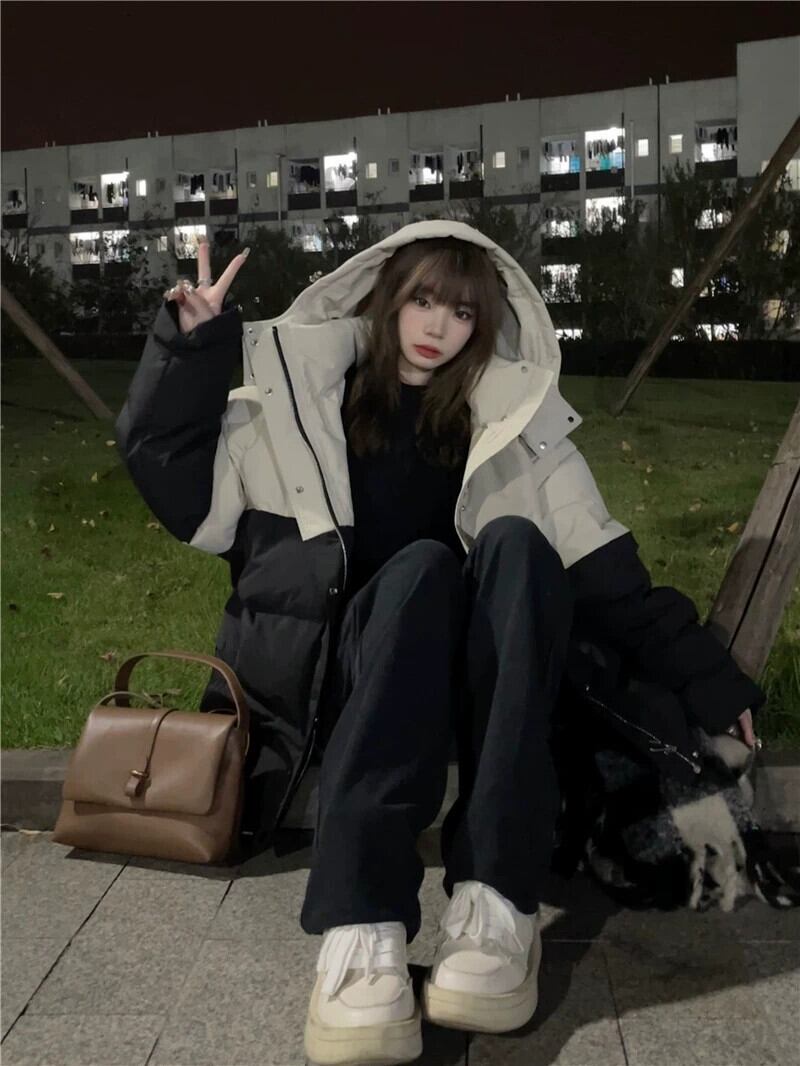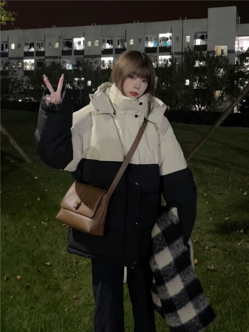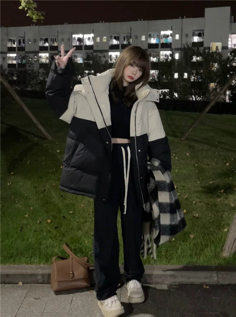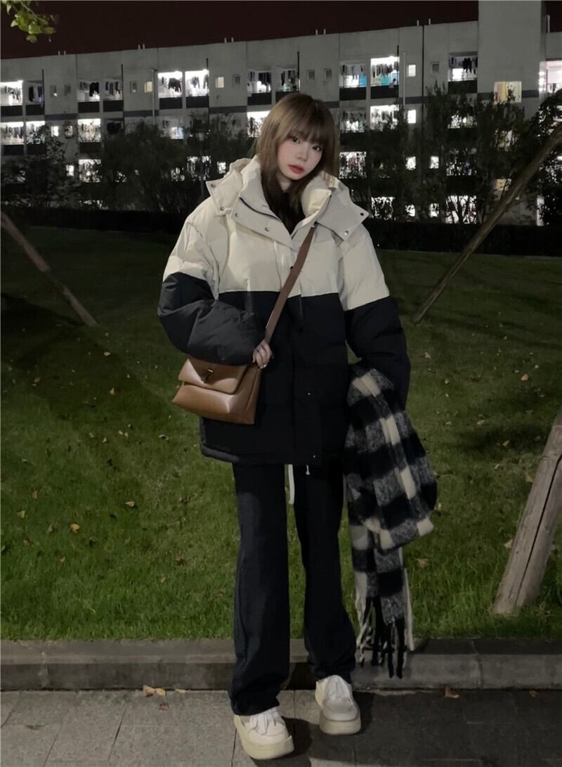 カラーコントラストステッチのバージョンの緩い厚いパッド入りジャケット女性の冬 2023 新しいオールマッチミッドレングスコットンイン ウィンター 冬物 0921983421320663