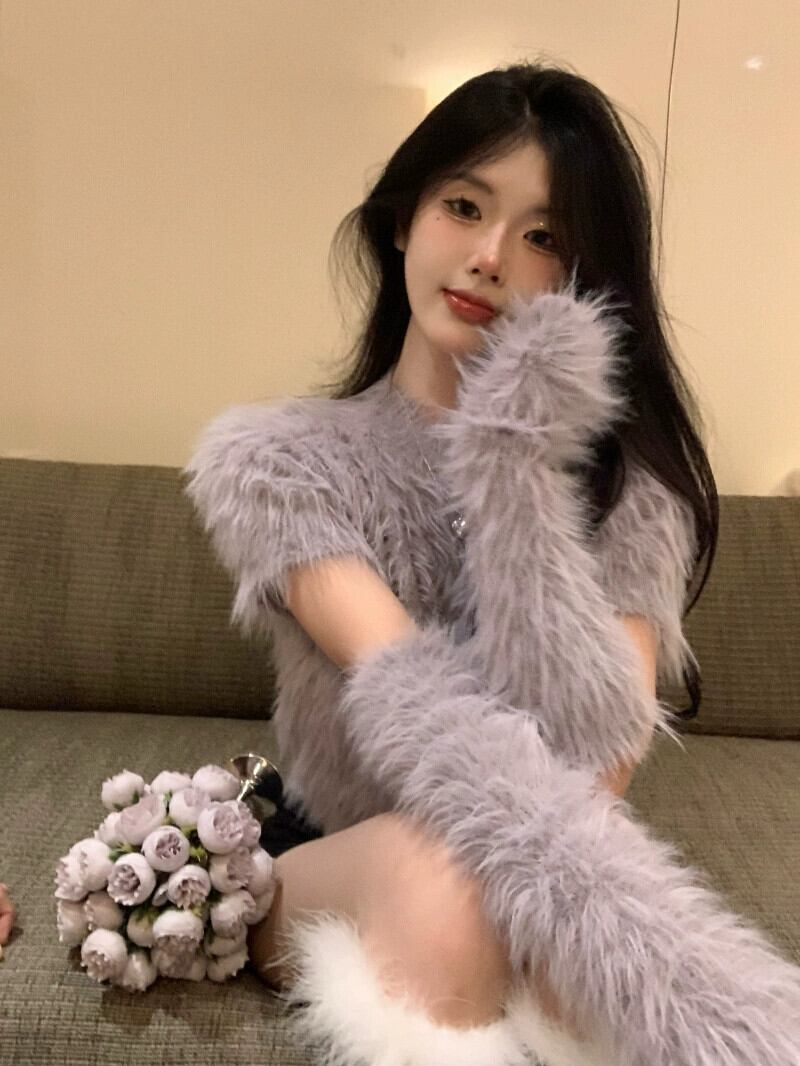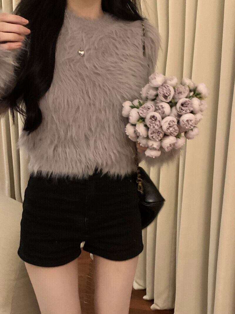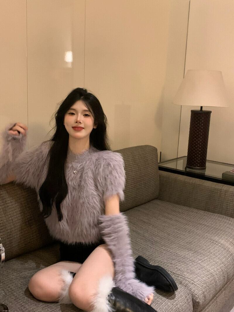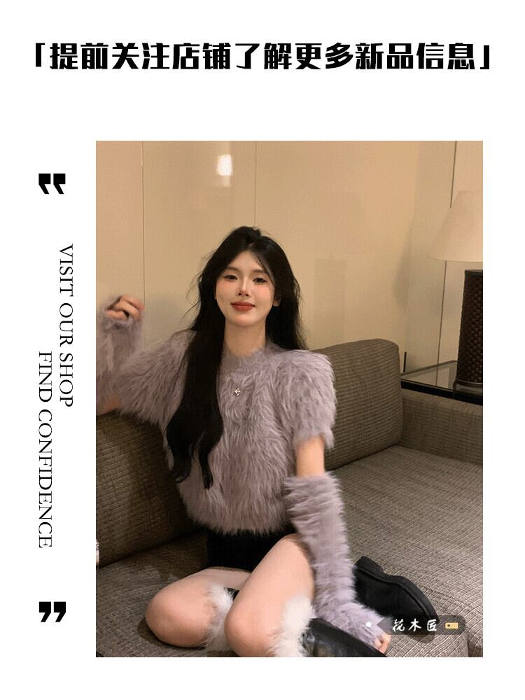 バージョンのソフトワックス状模造ミンクベルベットセーター女性の春と秋の 2023 新しい袖スリーブショートデザインラウンドネックニットトップ スプリング 春物 オータム 秋物 Oネック 0921951461330648