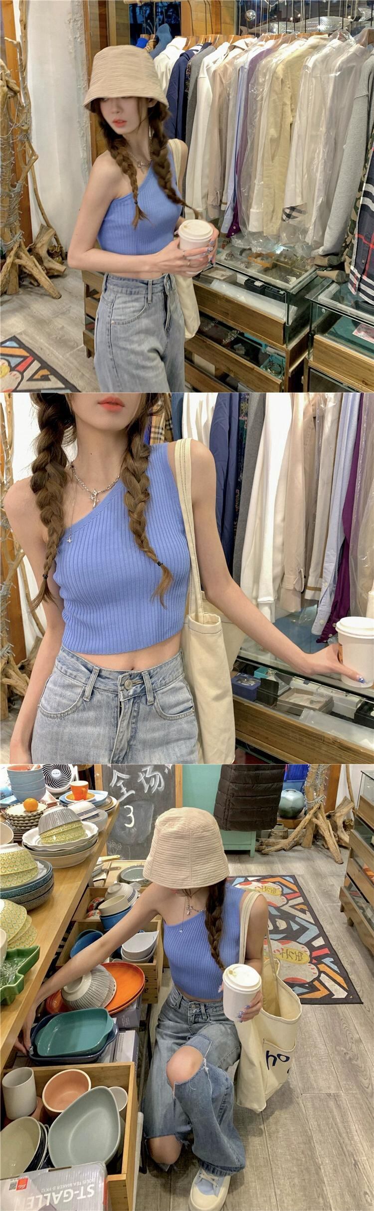 セクシーなオフショルダーショートニット斜め襟ベスト女性の夏の 2023 新しいスリムフィットボトシャツトップ サマー 夏物 0921959076363777
