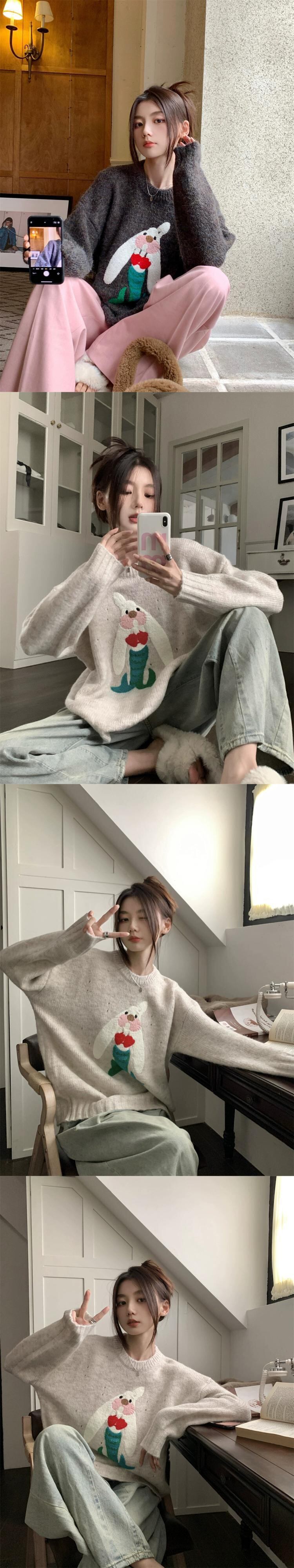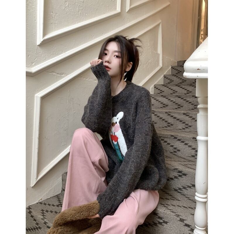 レトロ怠惰なスタイルのウサギのプルオーバーセーター女性の春と秋の 2023 新しいオールマッチルーズスリム長袖ニットトップ ロング スプリング 春物 オータム 秋物 0921919675842891