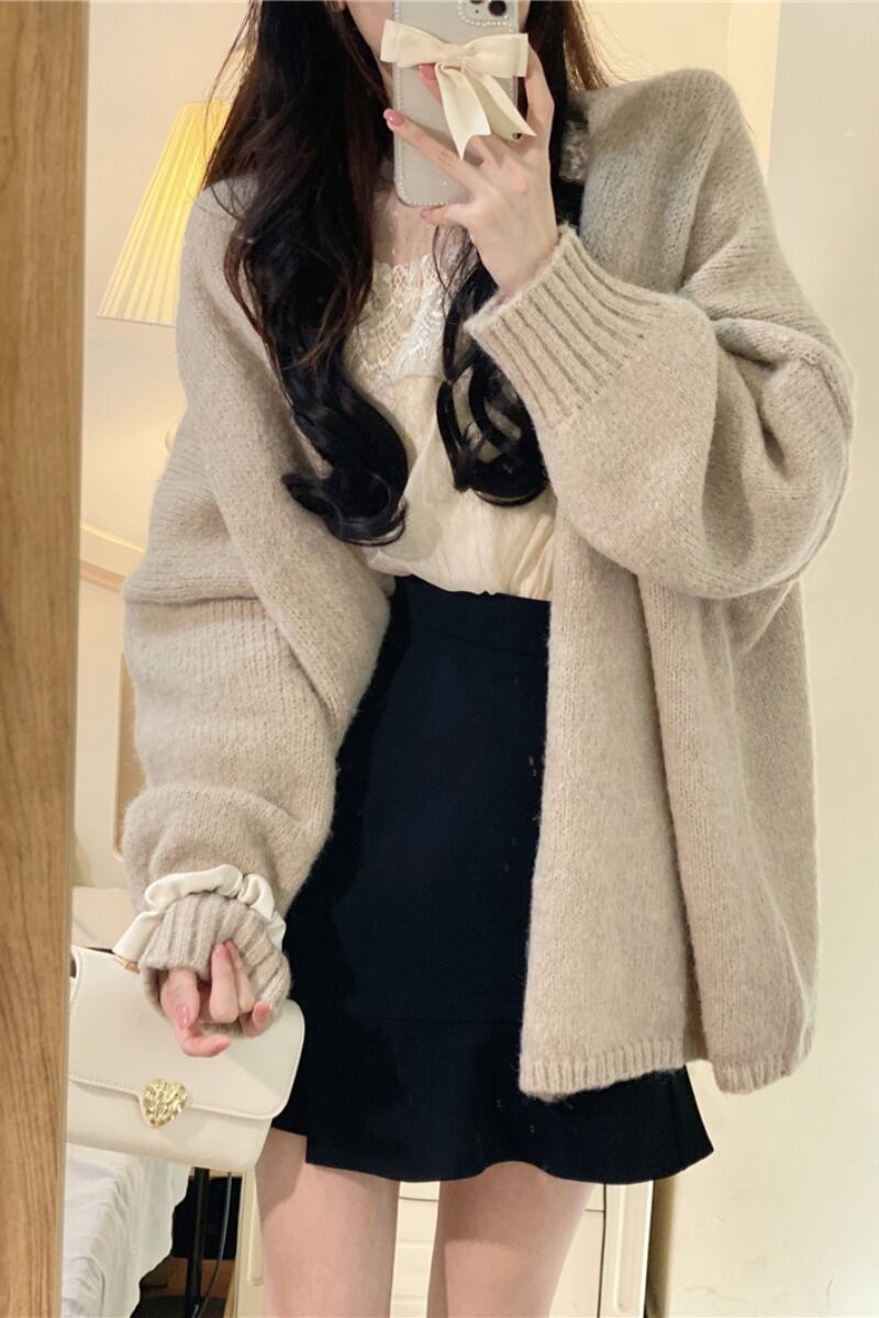 優しいスタイルオールマッチソリッドカラーセータージャケット女性春 2023 新バージョンソフトワックスルーズ長袖ニットカーディガン ロング スプリング 春物 0921982176169151