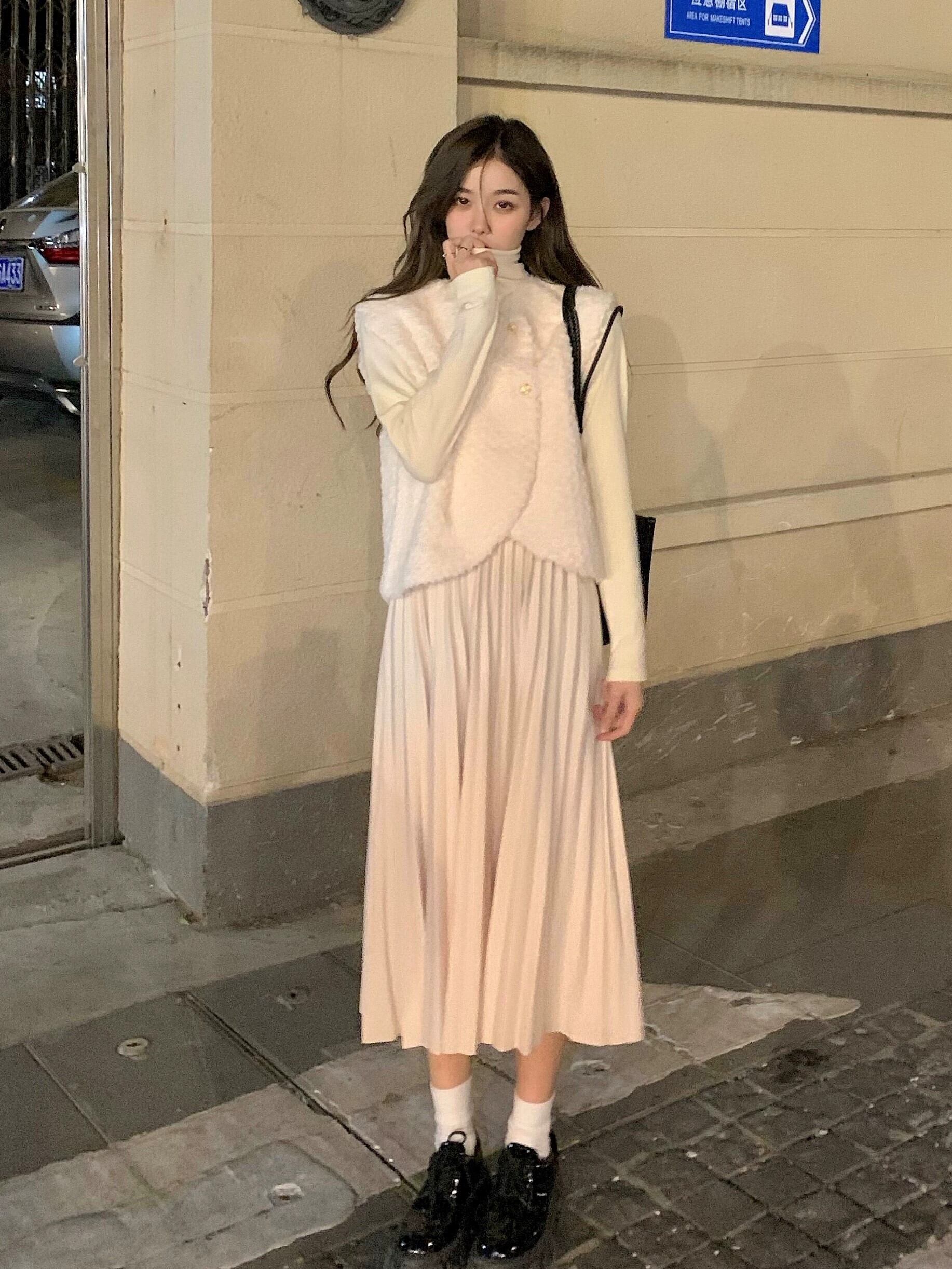 穏やかな風の雰囲気ファッションスーツ女性 2023 春の新ぬいぐるみベストボトシャツプリーツスカートスリーピーススーツ スプリング 春物 0921979761021570