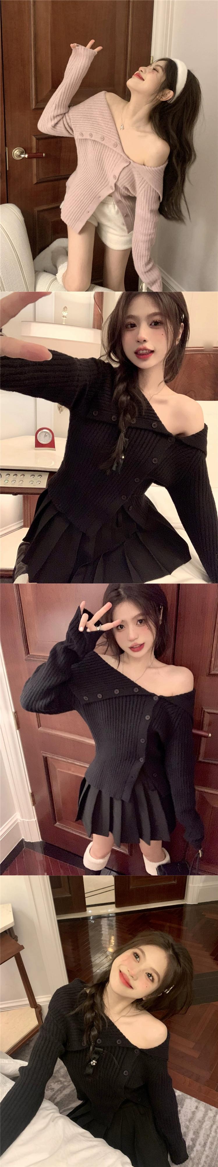 純粋な欲望っぽいスタイルラペル不規則なセータージャケット女性の春と秋の 2023 新しいショートセクションスリムカーディガントップ潮 スプリング 春物 オータム 秋物 0921962795289701