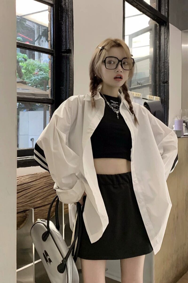 スタイル bf スタイルコントラストカラーストライプシャツジャケット女性の夏 2023 新しい怠惰なスタイルルーズオールマッチ長袖シャツ ロング サマー 夏物 0921915167276734