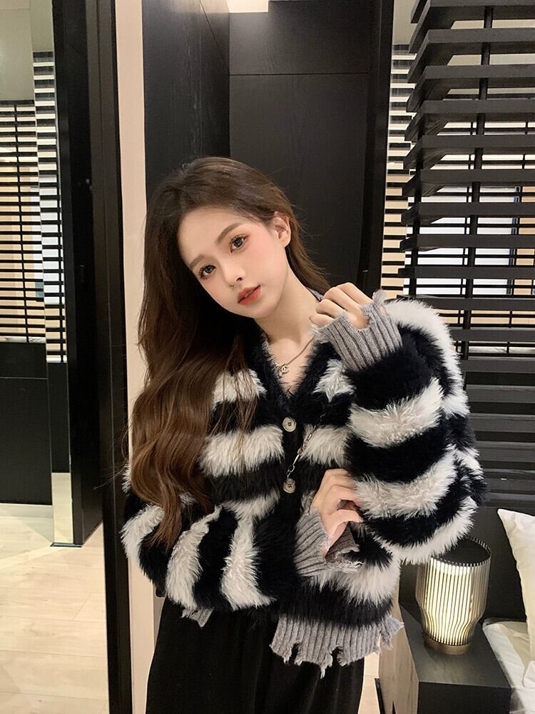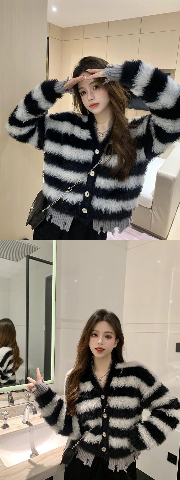 模造ミンクベルベット偽ツーピース肥厚ストライプセーターコート女性の春と秋 2023 新しいソフトワックスニットカーディガントップ潮 スプリング 春物 オータム 秋物 0921960242505350