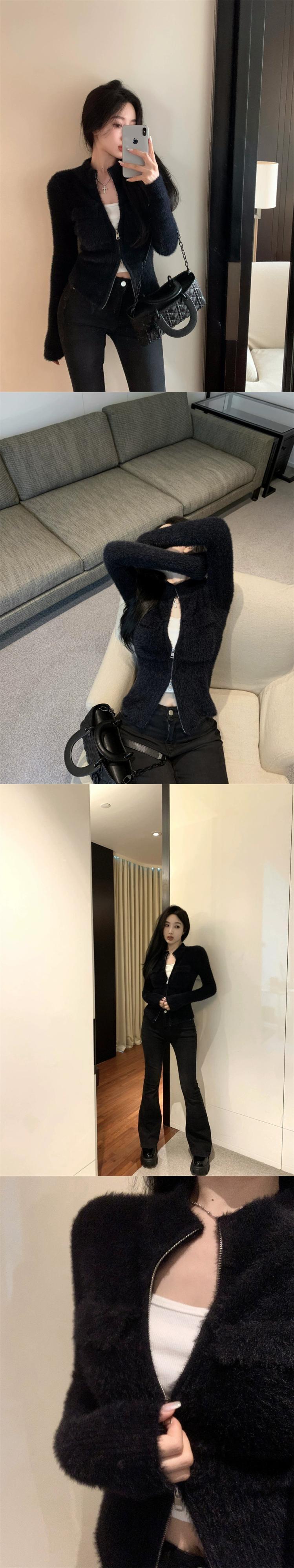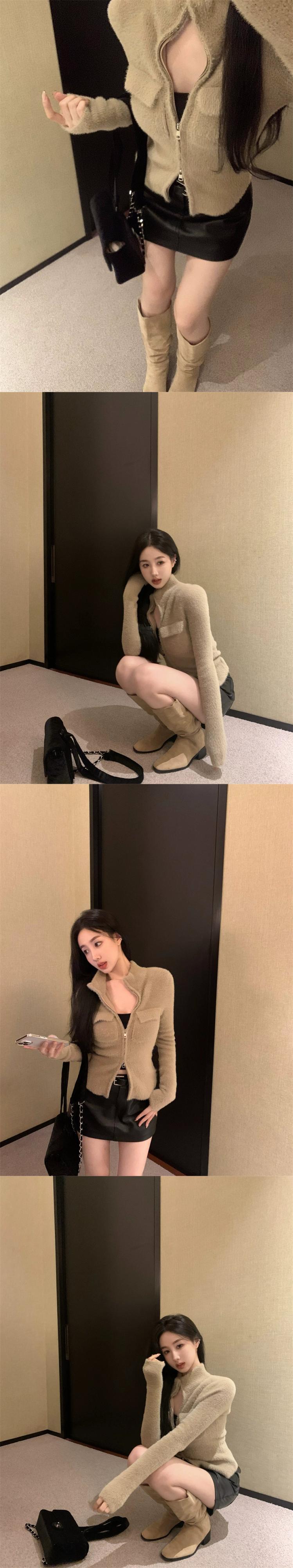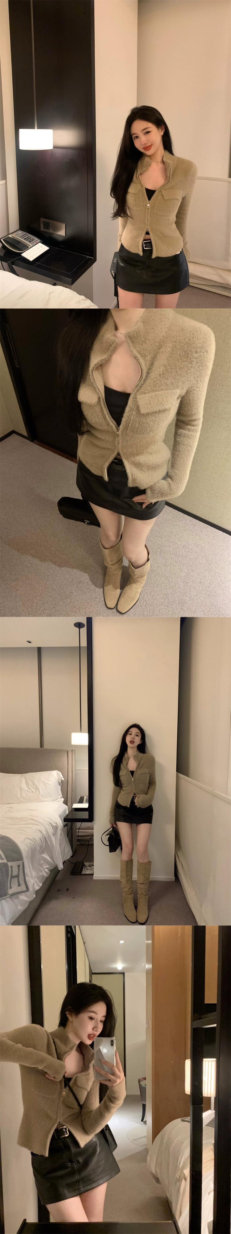 有能なセクシーなデザインスタンドカラーセーターカーディガン女性春 2023 新しい気質スリムジッパーニットトップ スプリング 春物 0921998769115617