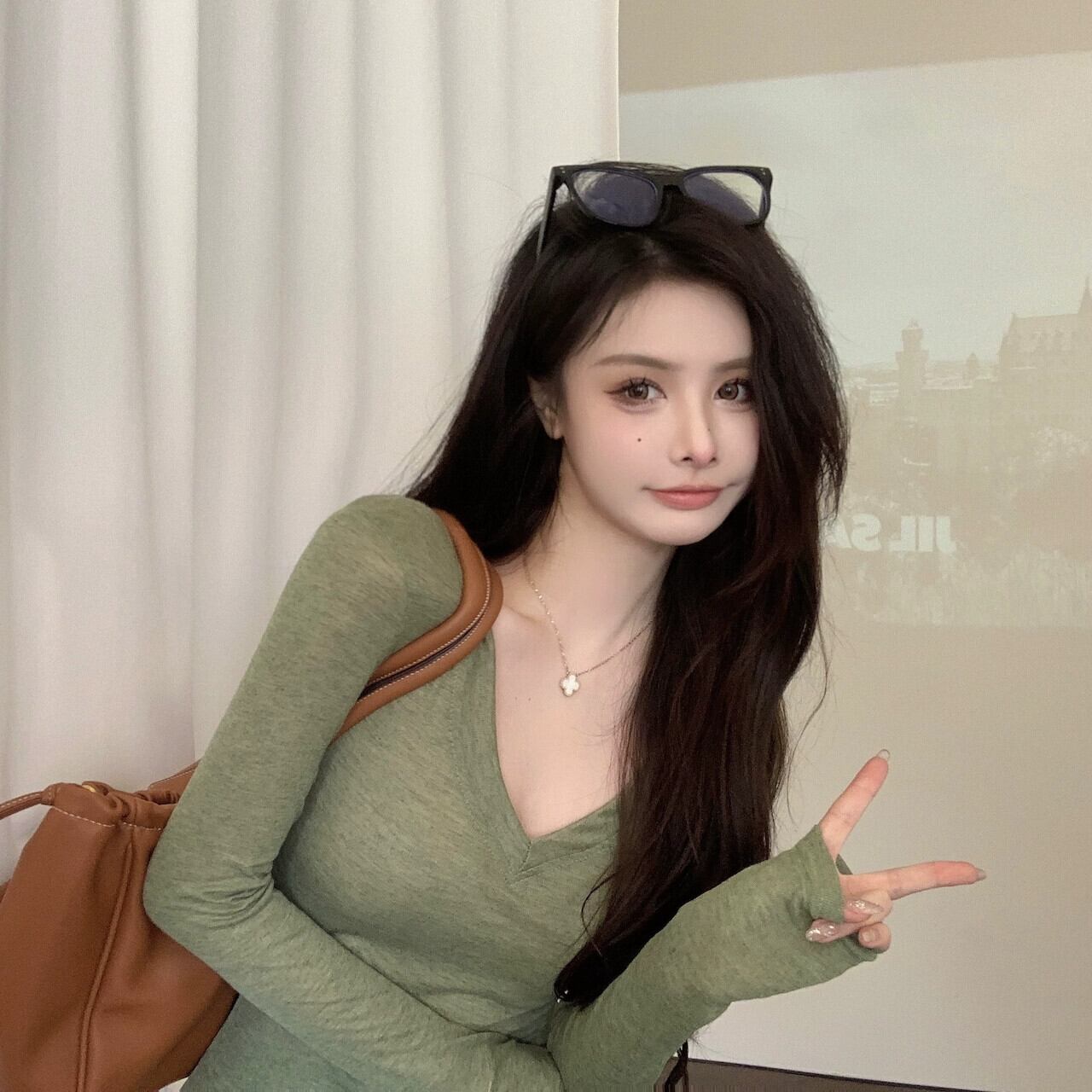 ニッチデザインセンスVネック長袖Tシャツレディース2023春秋新作オールマッチ自己修養と薄底シャツインナートップ ロング スプリング 春物 オータム 秋物 092197962295449
