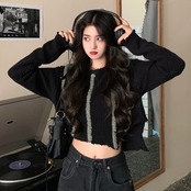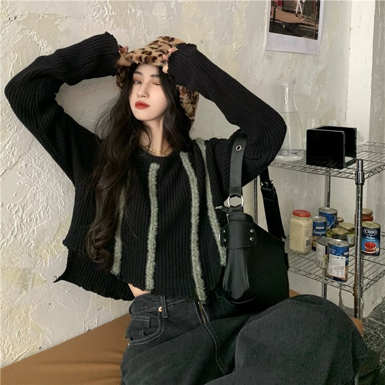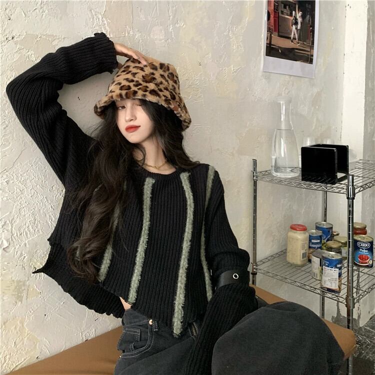ネットレッド香港風味コントラストカラーストライプステッチセーター女性の春 2023 新しいルーズショート長袖底セーター ロング スプリング 春物 0921935622770444