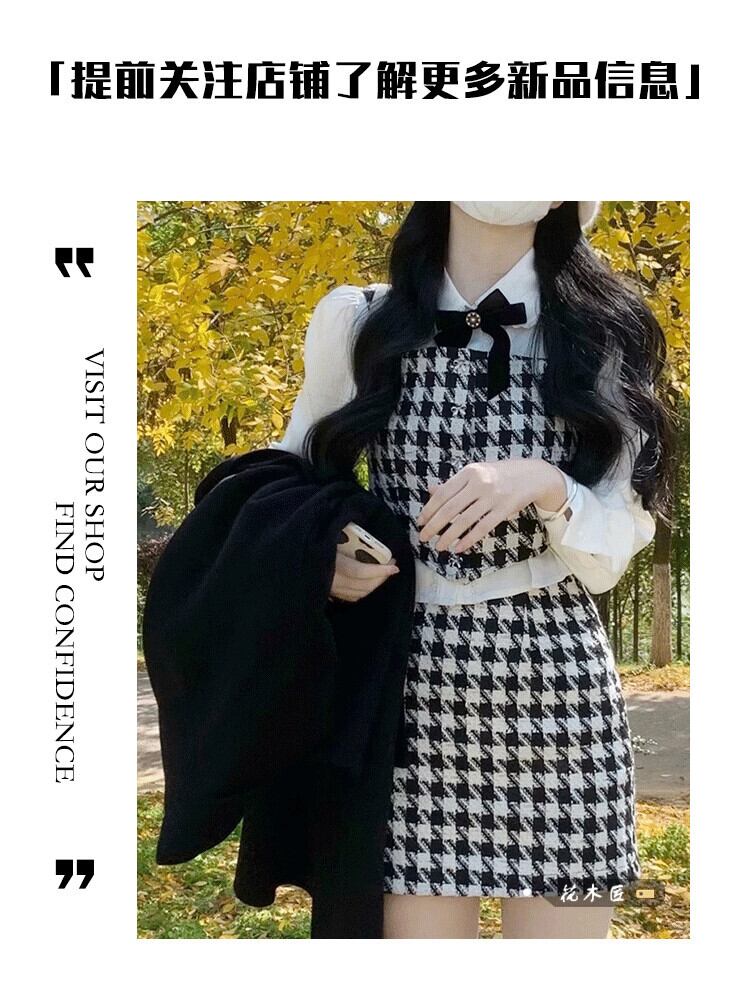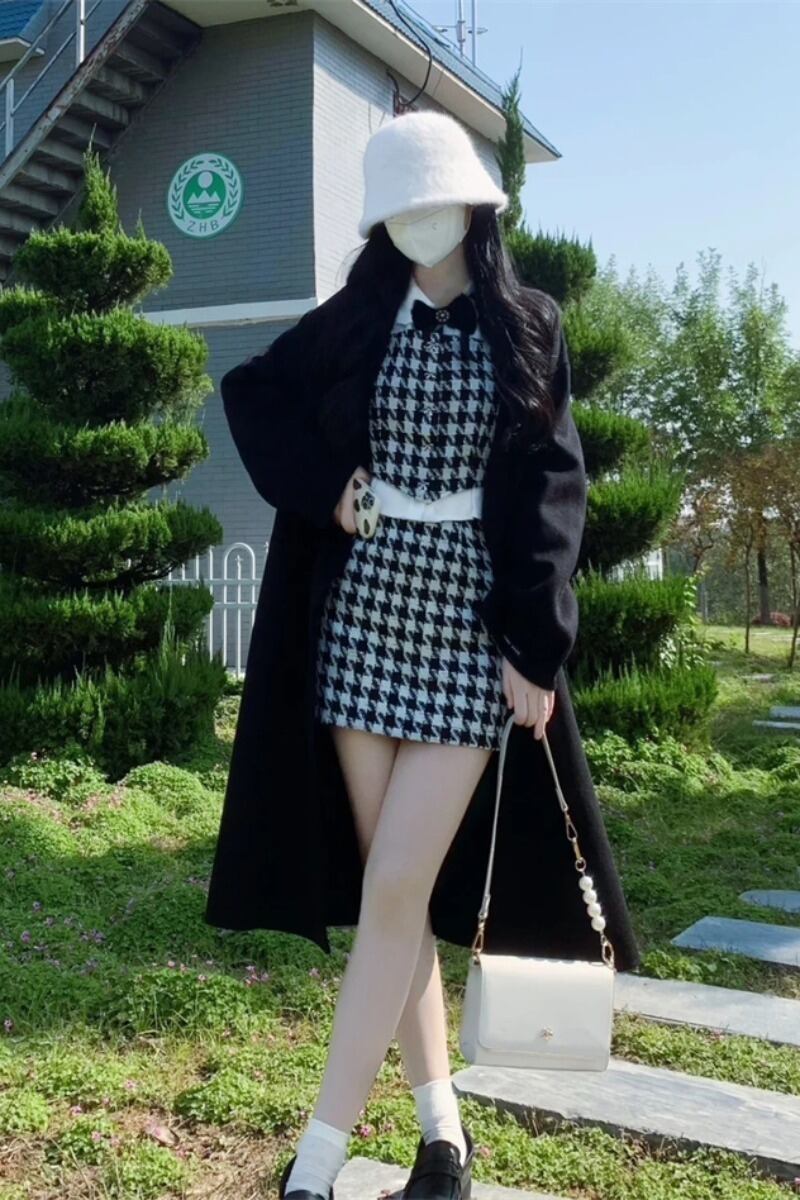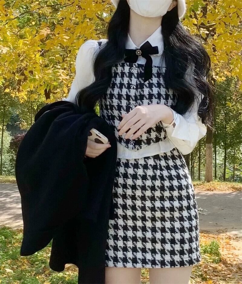 年齢を減らす小さな香りの風スーツスカート女性 2023 夏の新色コントラストチェック柄ベストとシャツスカート 3 点セット サマー 夏物 0921976342815880