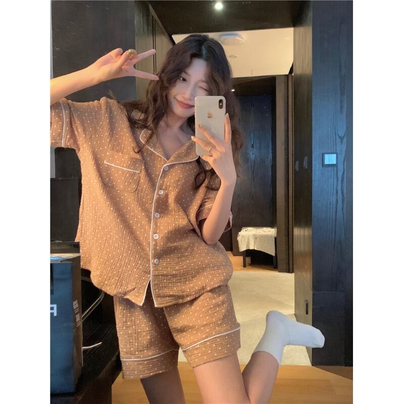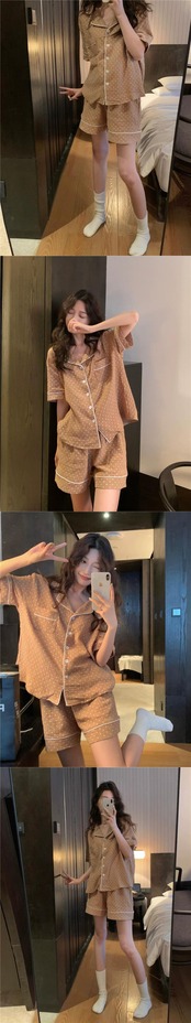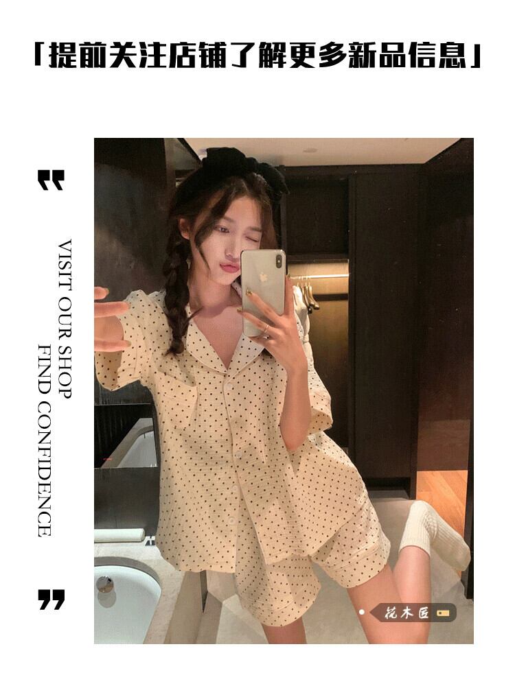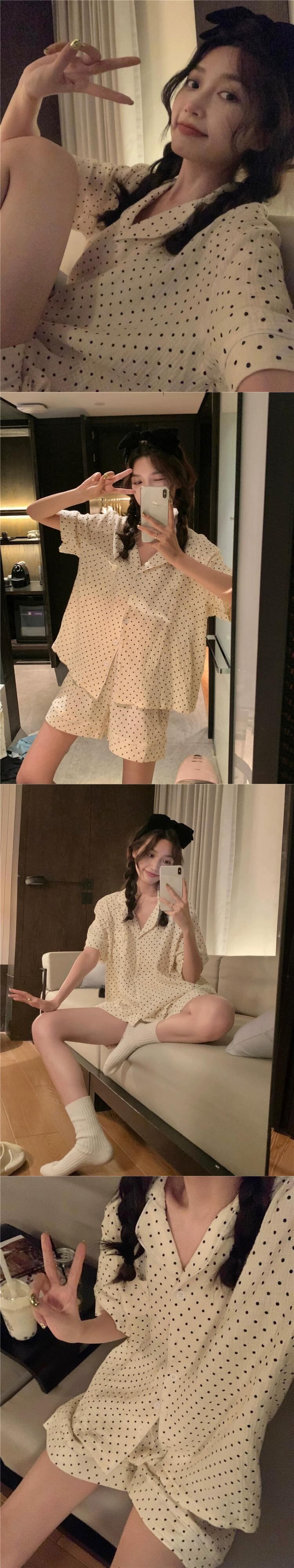遊び心溢れる可愛い水玉模様のパジャマセット レディース 2023年夏新作 スモールラペルトップ ショーツ 在宅サービス 2点セット 大人ガーリー スウィート キュート カジュアル サマー 夏物 ブルマー 0921938504116008
