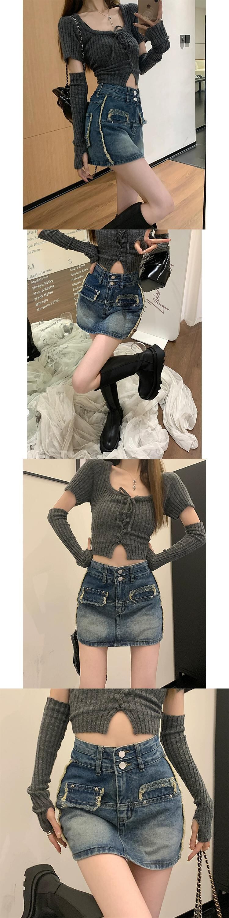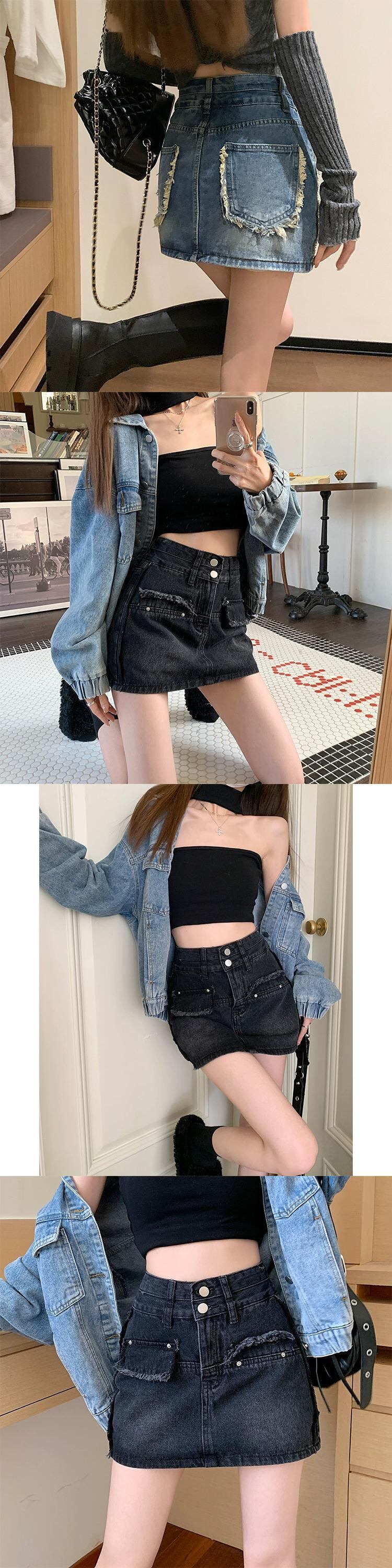 ホットガールウエストローエッジ薄手スカート夏2023多用途Aラインデニムショートスカートトレンド サマー 夏物 092193502335191