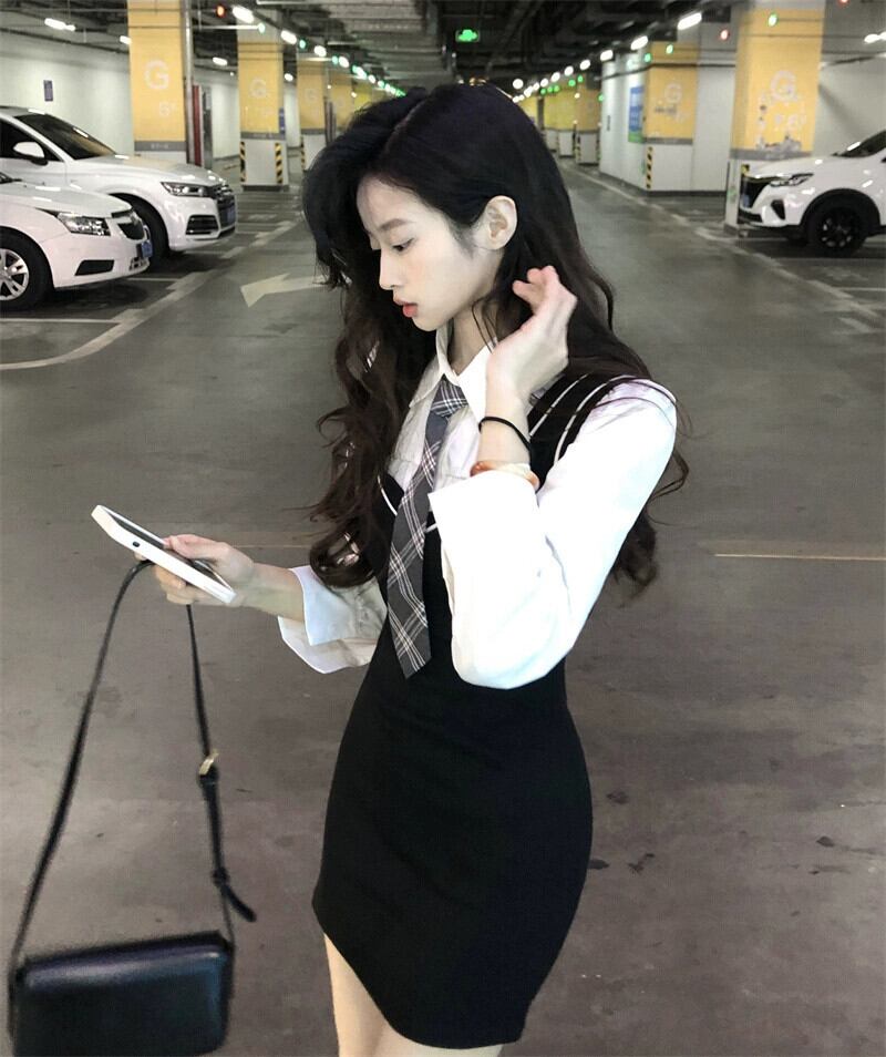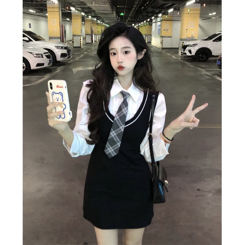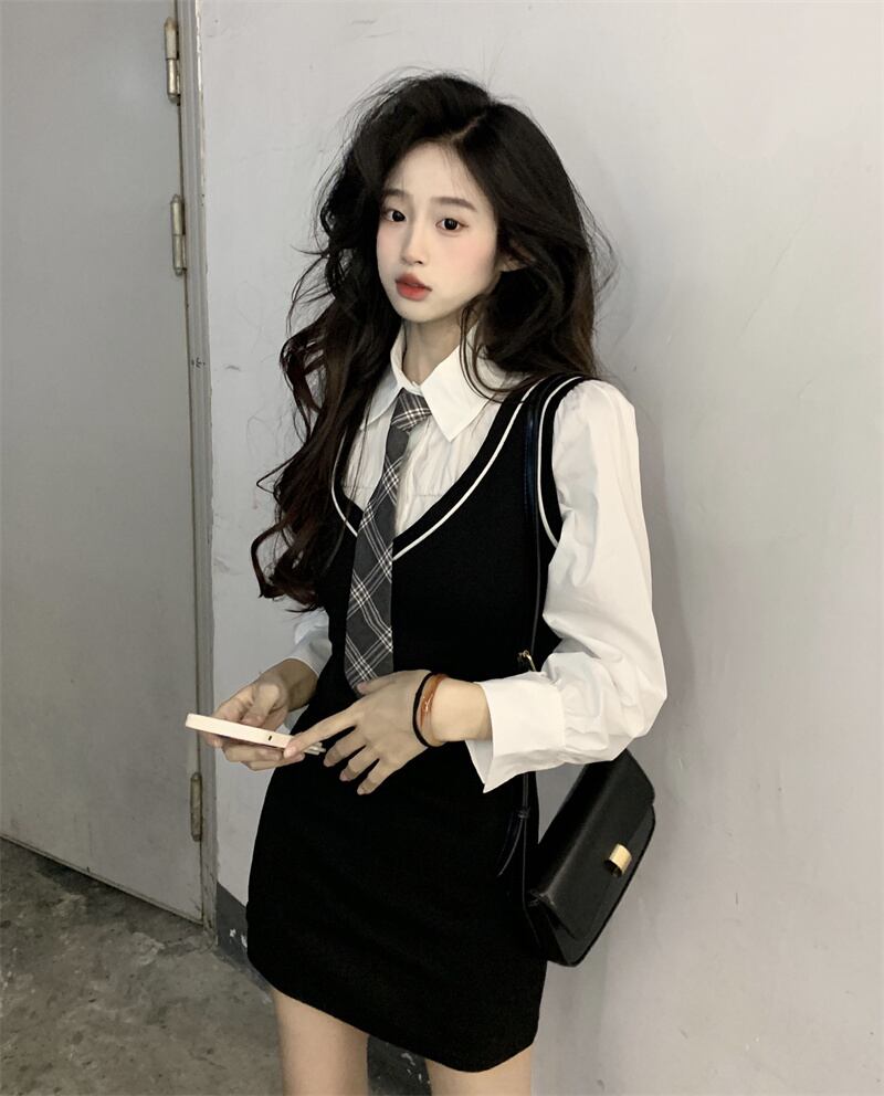 スタイルファッションスーツ婦人服2023年初春新作ネクタイ付きシャツスリムベストドレスツーピースセット スプリング 春物 0921930737978751