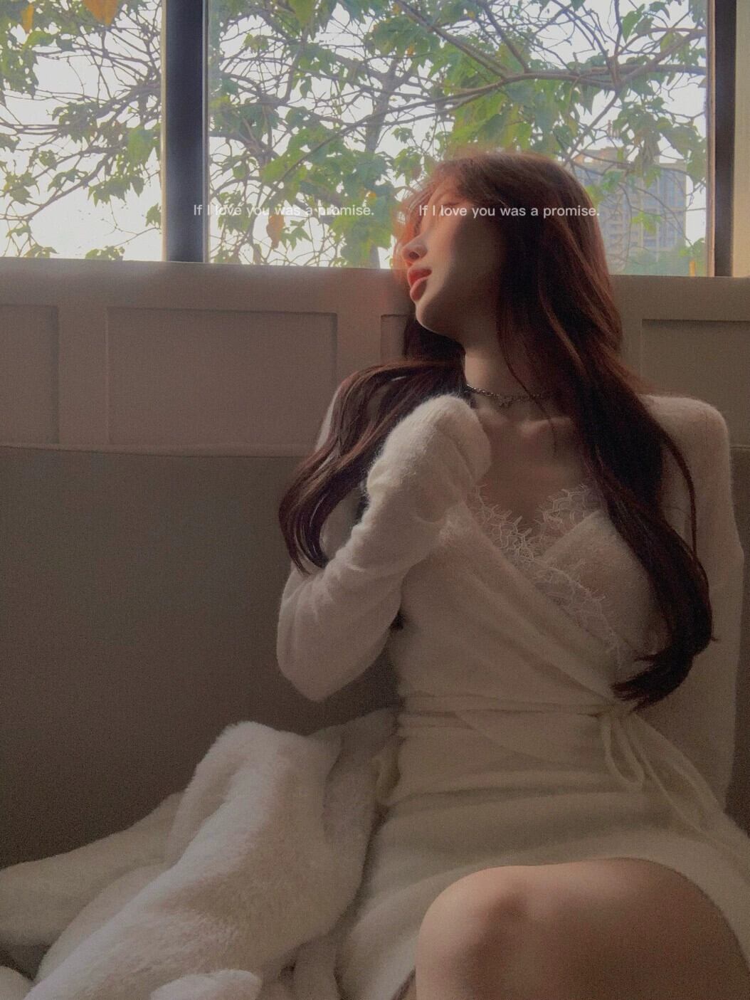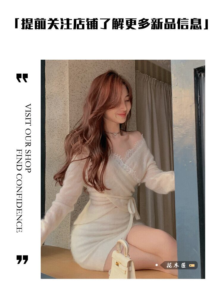 ピュアディザイア Vネックレースステッチニットセーターレディース2023春秋新作タイアップスリムイレギュラー長袖トップ ロング スプリング 春物 オータム 秋物 0921933482961232
