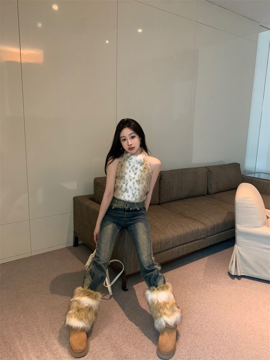 甘くてスパイシーなスタイルのセクシーな背中の開いたアニマル プリント ベスト婦人服 2023 春の新しいスリム フィットと薄いショート ノースリーブ トップ 半袖 ハーフスリーブ 大人ガーリー スウィート キュート カジュアル スプリング 春物 0921935056530005