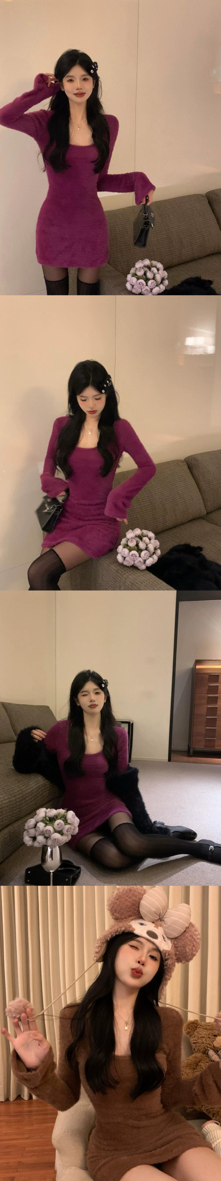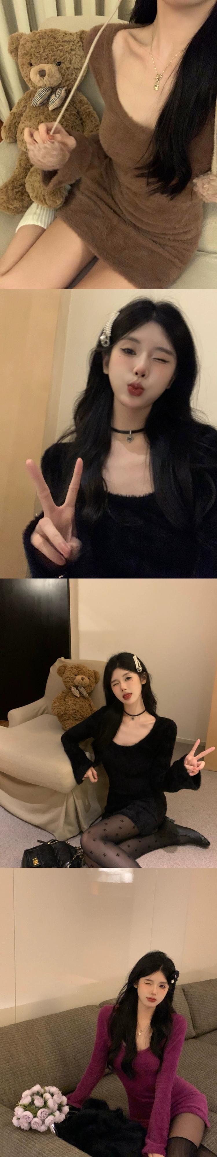 気質uネックファッション長袖ニットドレス女性の春と秋2023新しいウエスト痩身ボトミングバッグヒップスカート ロング スプリング 春物 オータム 秋物 0921930601847174